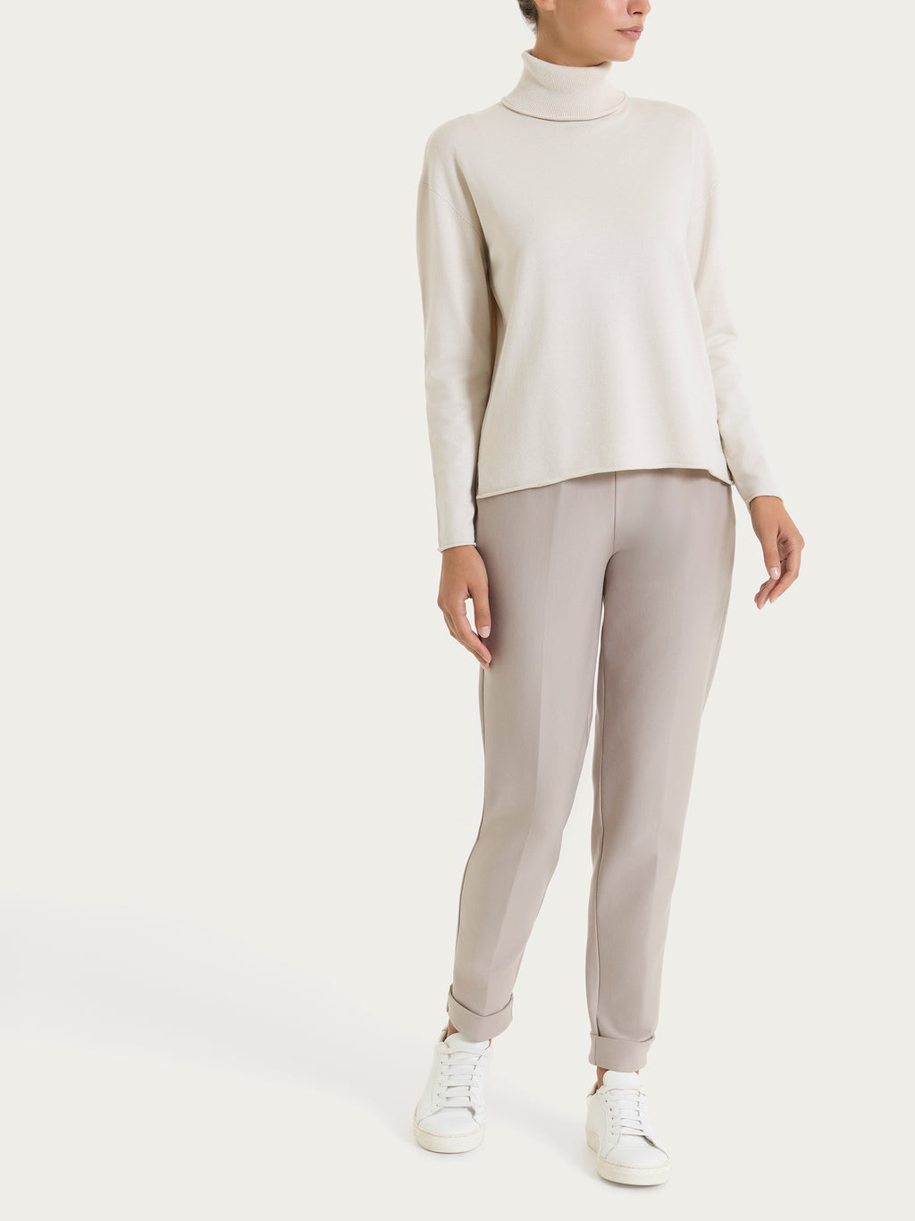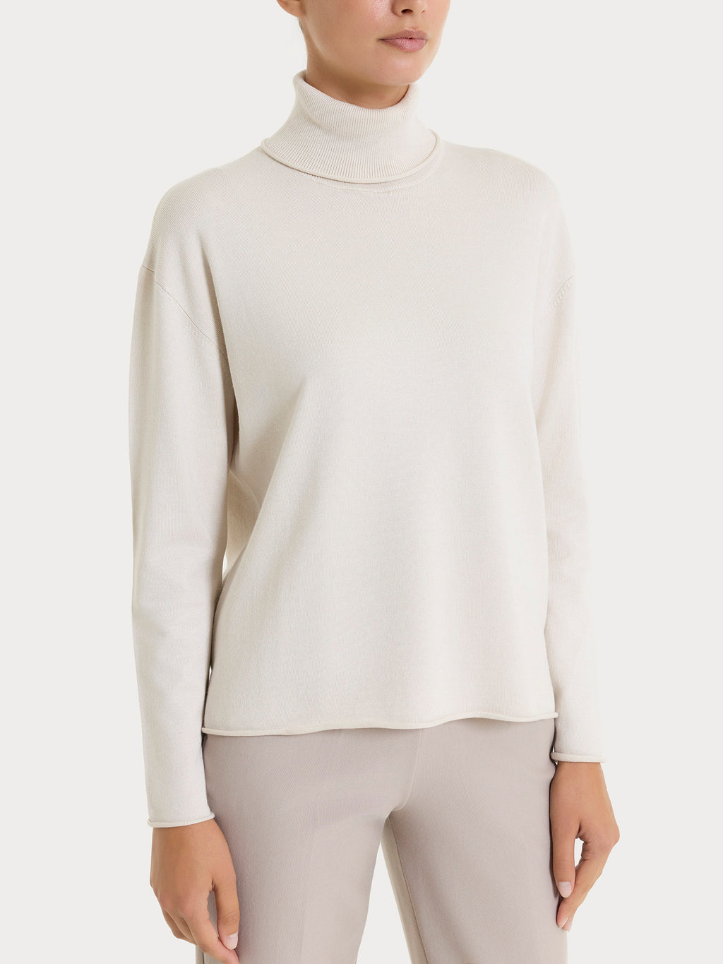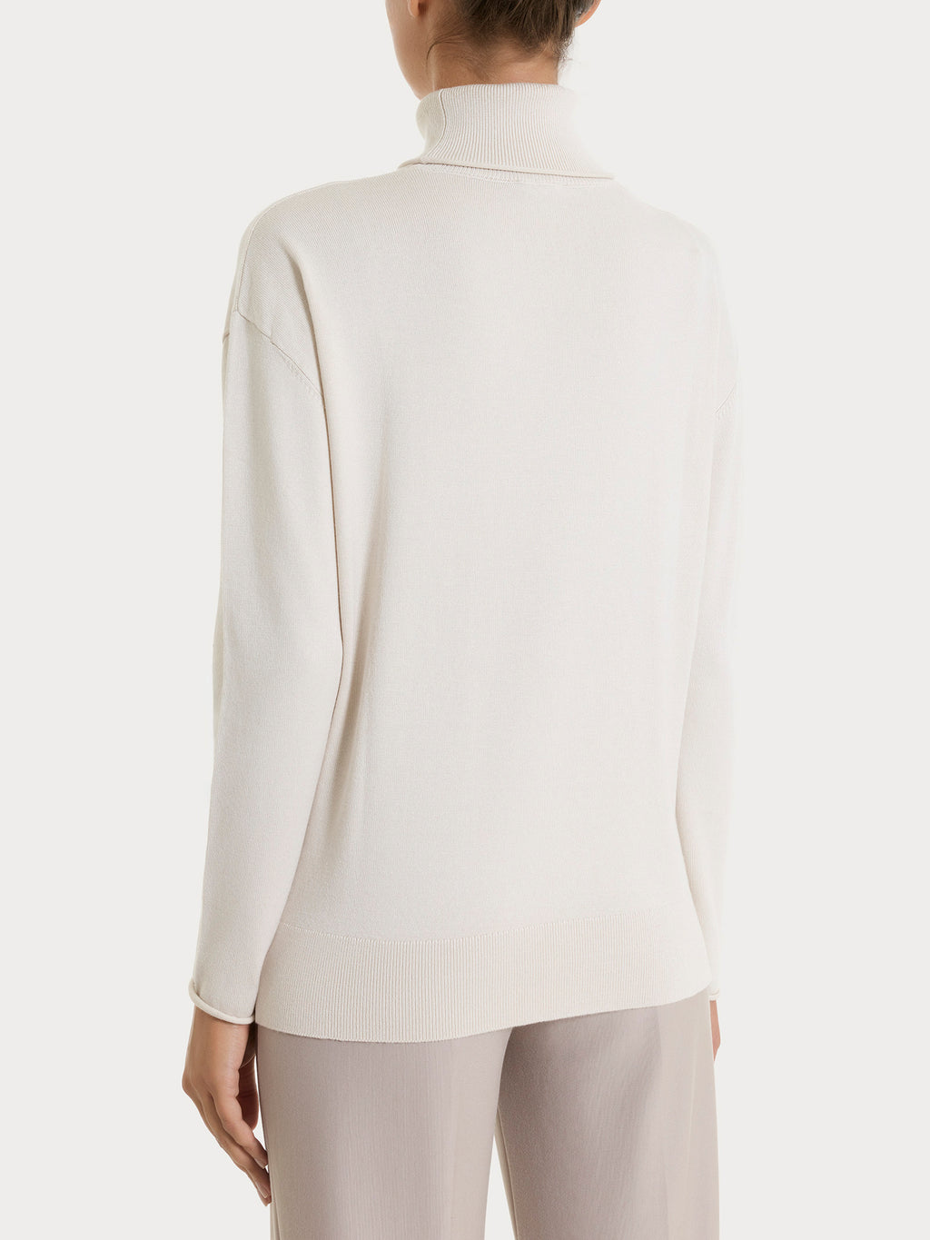 Maglia con collo roulè con manica lunga da donna in maglia rasata con finezza 12, traspirante, termoregolante e confortevole.