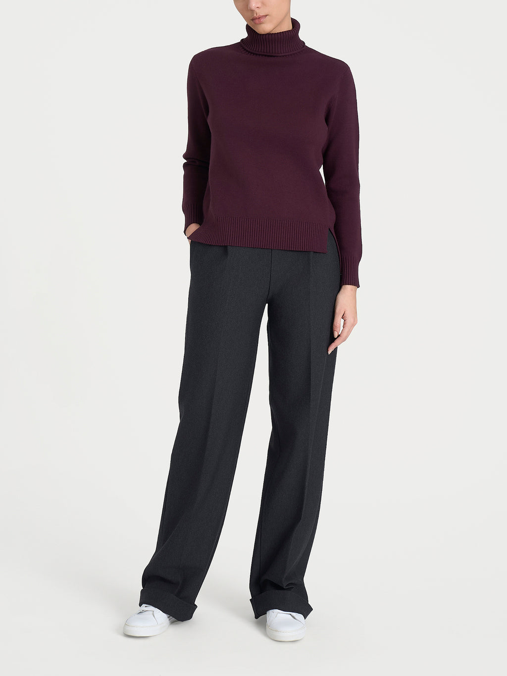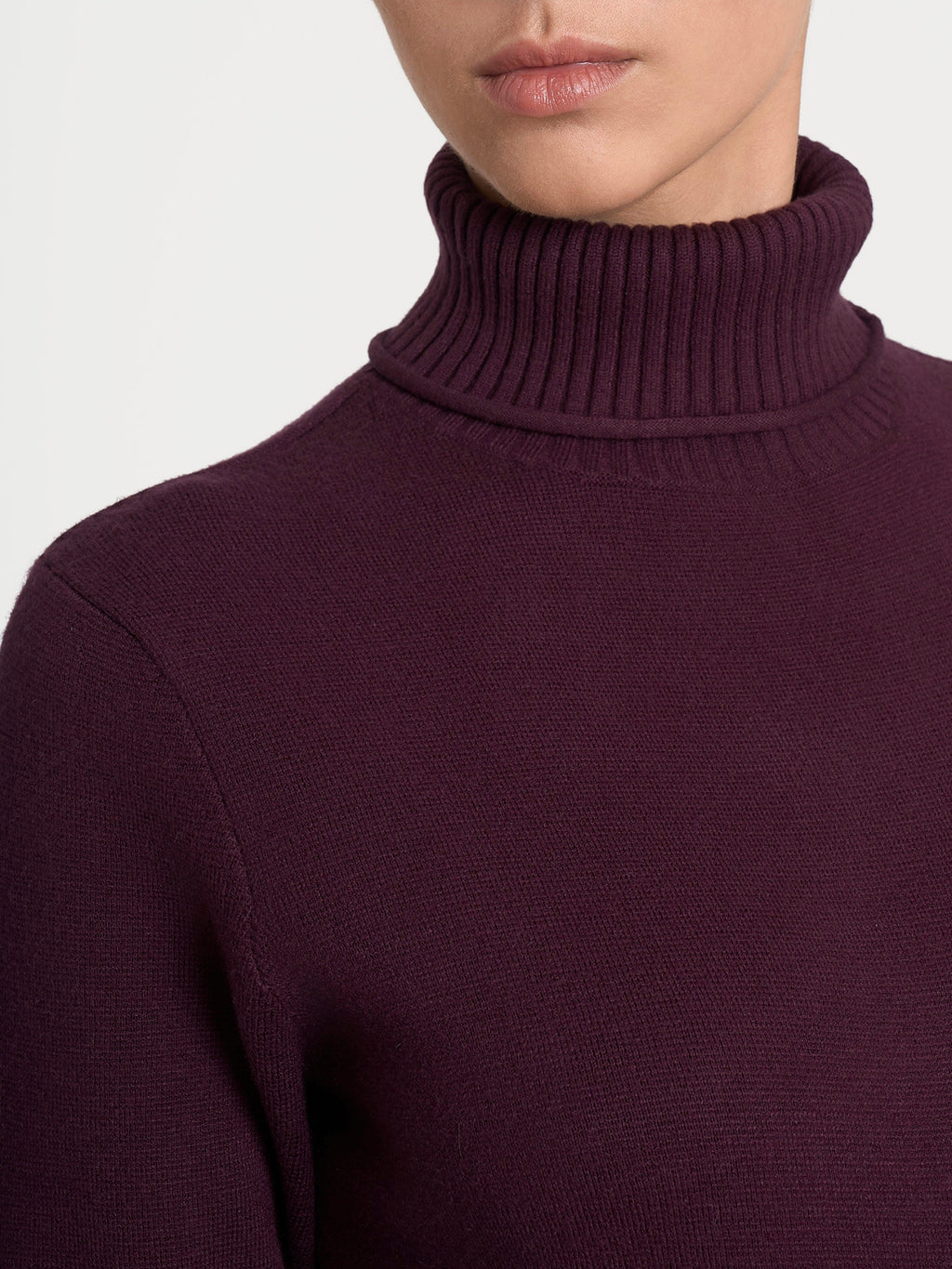 Maglia con collo roulè da donna in viscosa, tessuto in finezza 12, caldo, morbido e pratico.