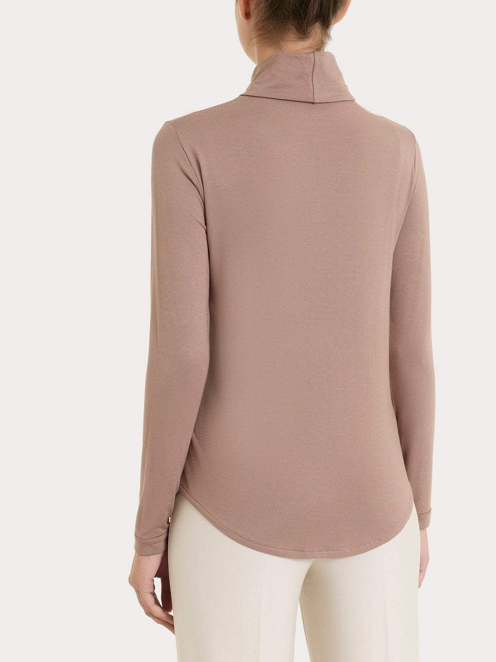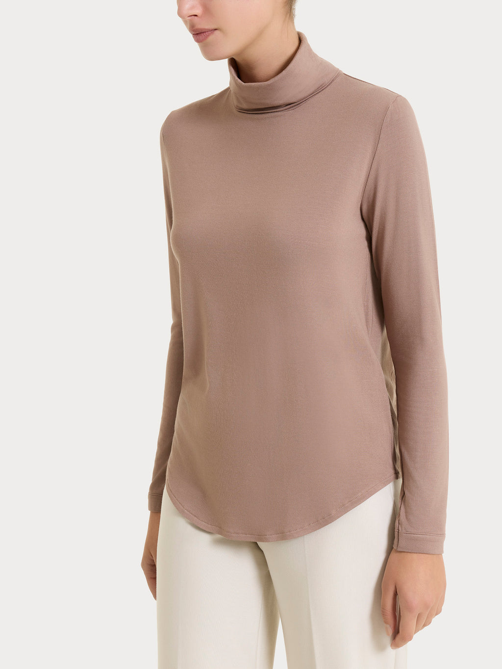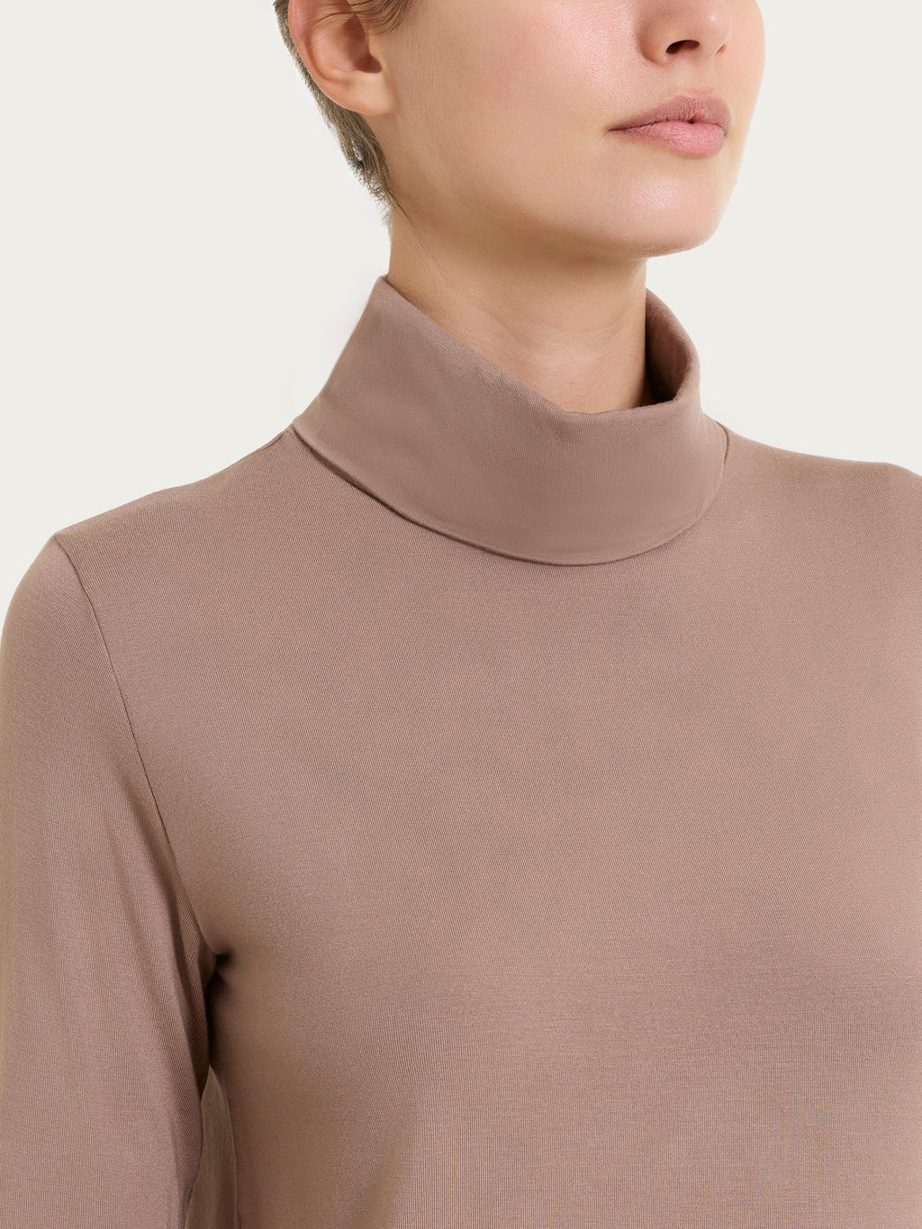 Maglietta con collo roulè morbido e manica lunga da donna.