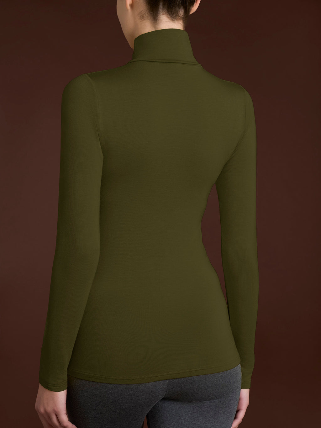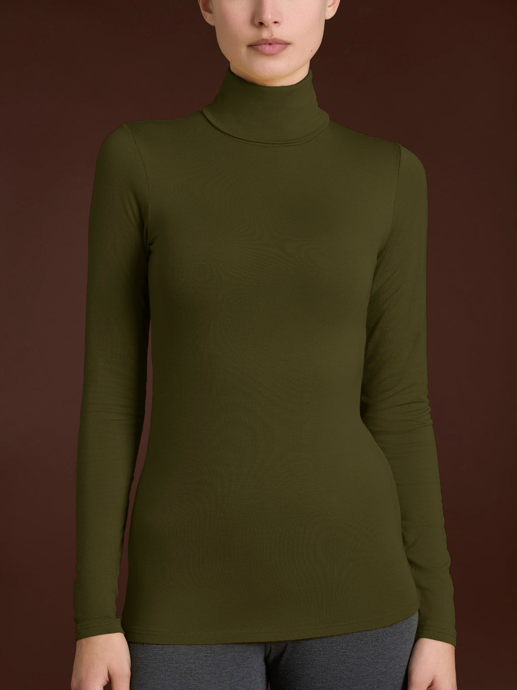 Maglia dolcevita a manica lunga da donna in ecoviscosa, una delicata viscosa elasticizzata calda e morbida.