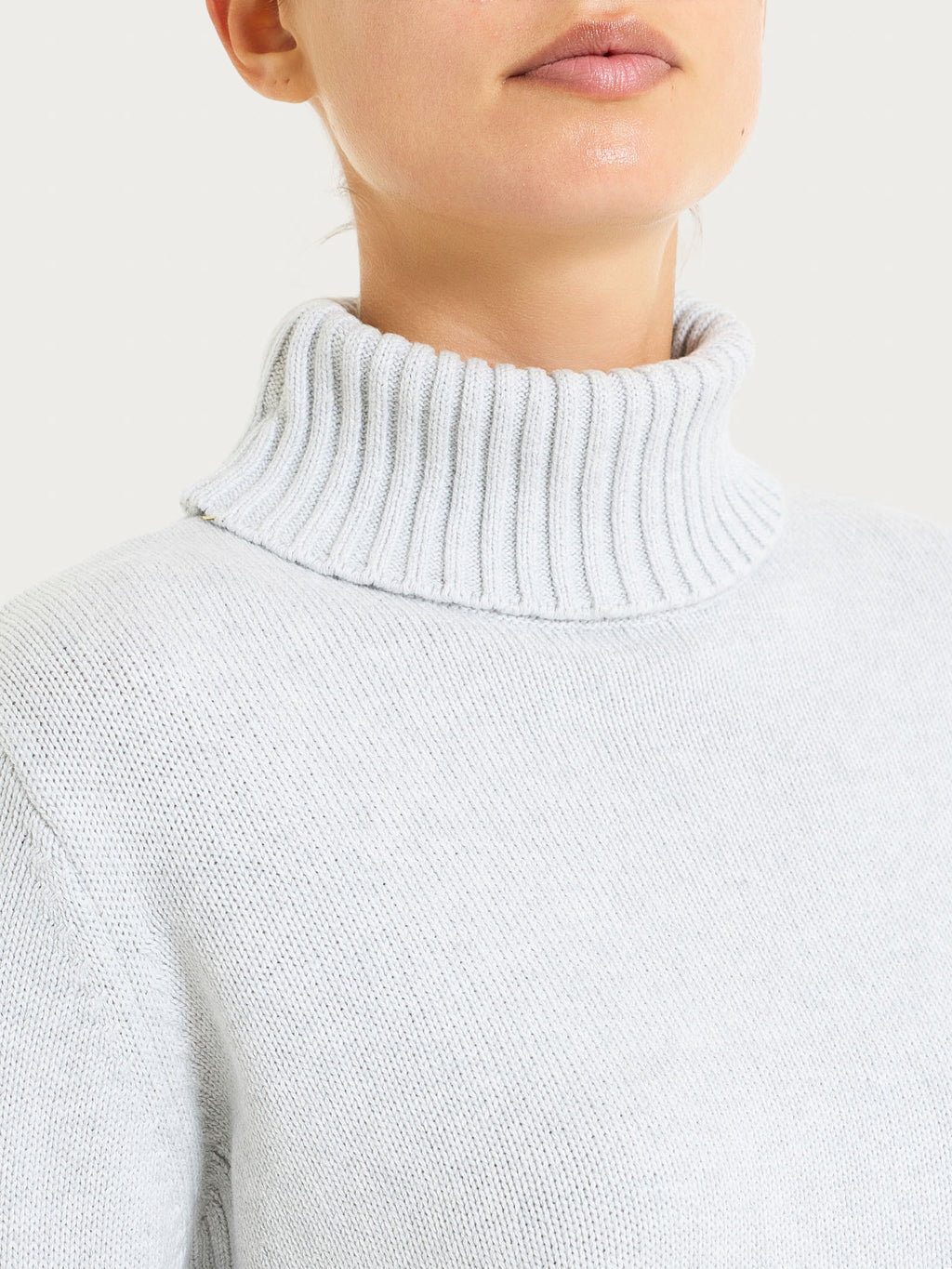 Maglia con collo alto da donna in puro cotone, tessuto in finezza 7, caldo e confortevole.