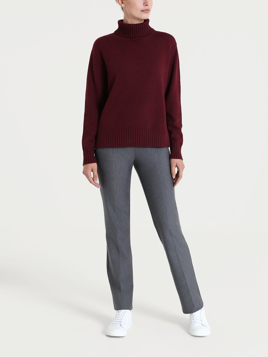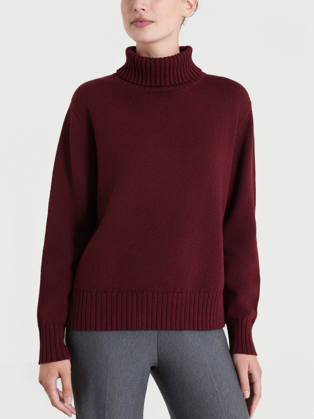 Maglia con collo alto da donna in puro cotone, tessuto in finezza 7, caldo e confortevole.