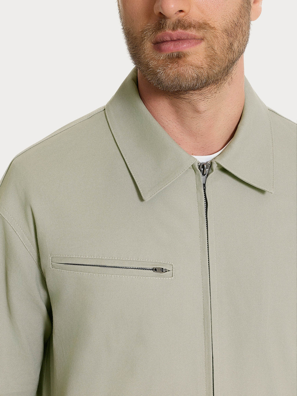 Giacca da uomo in Canvas Stretch con apertura frontale a zip, ideale per chi cerca un capospalla pratico e curato nei dettagli.