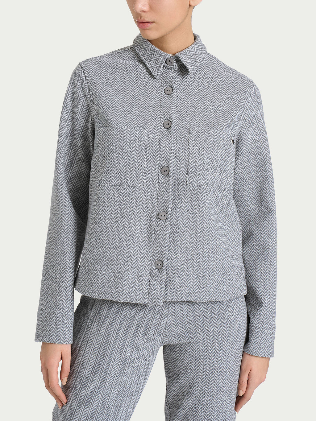 Giacca Shacket da donna con chiusura a bottoni e colletto.