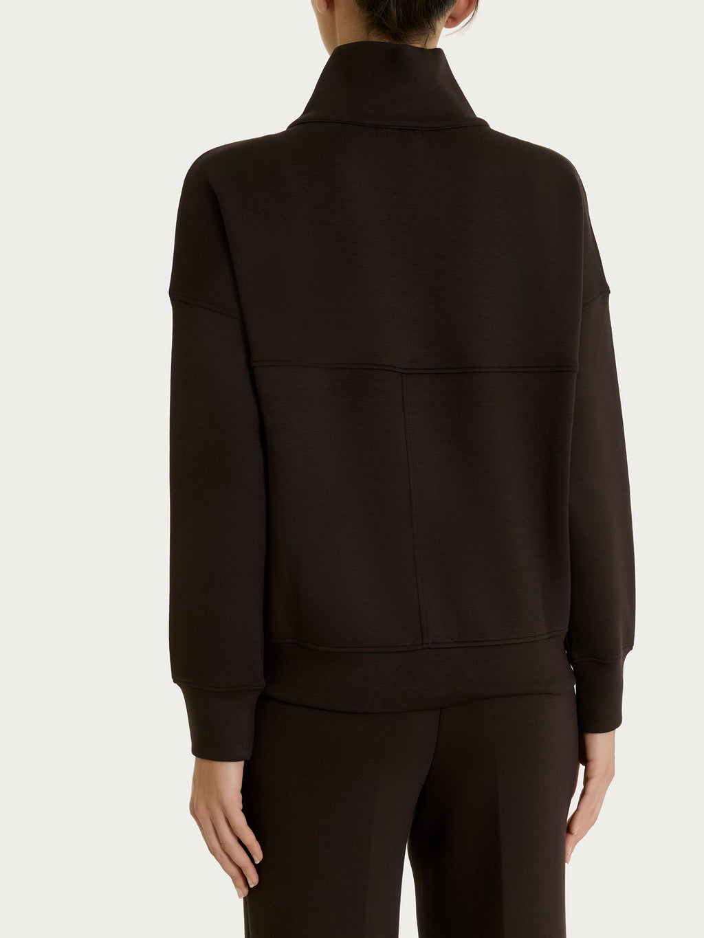 Realizzata in scuba, una maglia tecnica che unisce morbidezza, struttura e libertà di movimento.