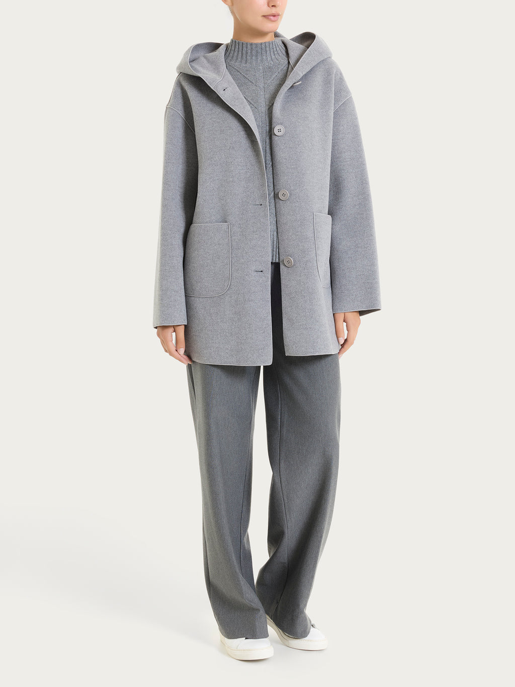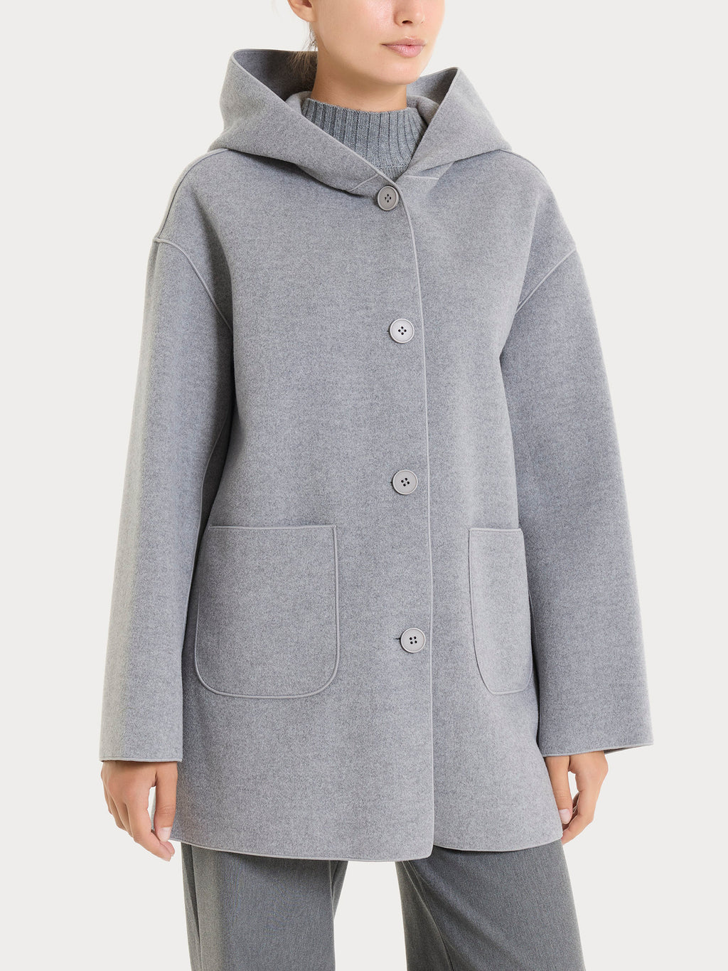Giaccone con cappuccio da donna in Vegan Wool.