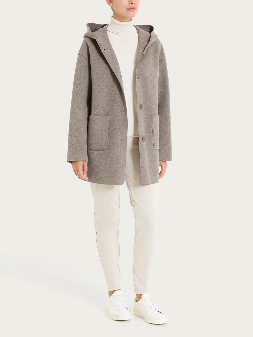 Giaccone con cappuccio da donna in Vegan Wool.