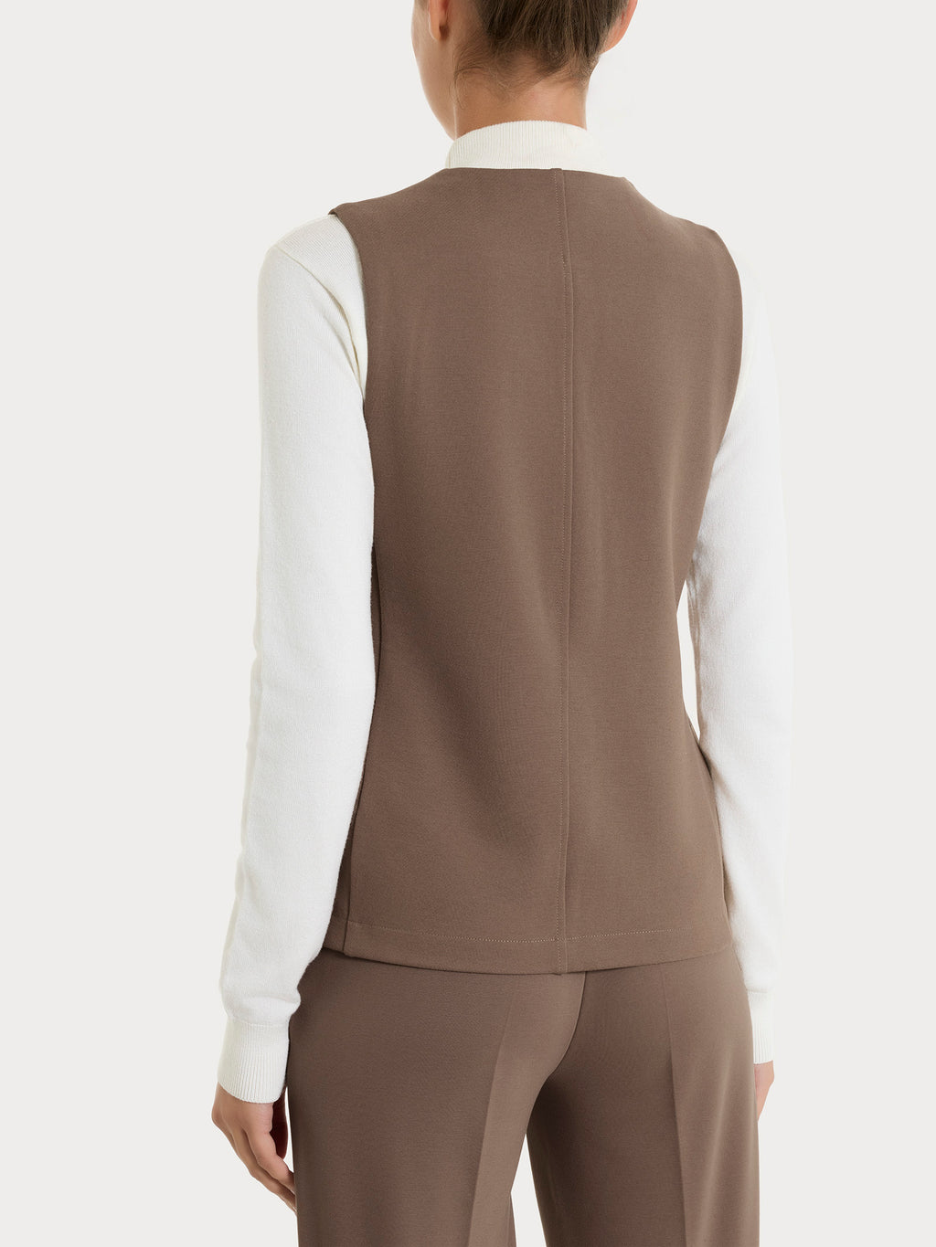 Realizzato in Cashmere Compact, un tessuto compatto e raffinato, dalla mano incredibilmente morbida, pensato per offrire comfort avvolgente grazie alla struttura consistente ma leggera, con una superficie liscia e vellutata che restituisce una sensazione piacevole a contatto con la pelle.