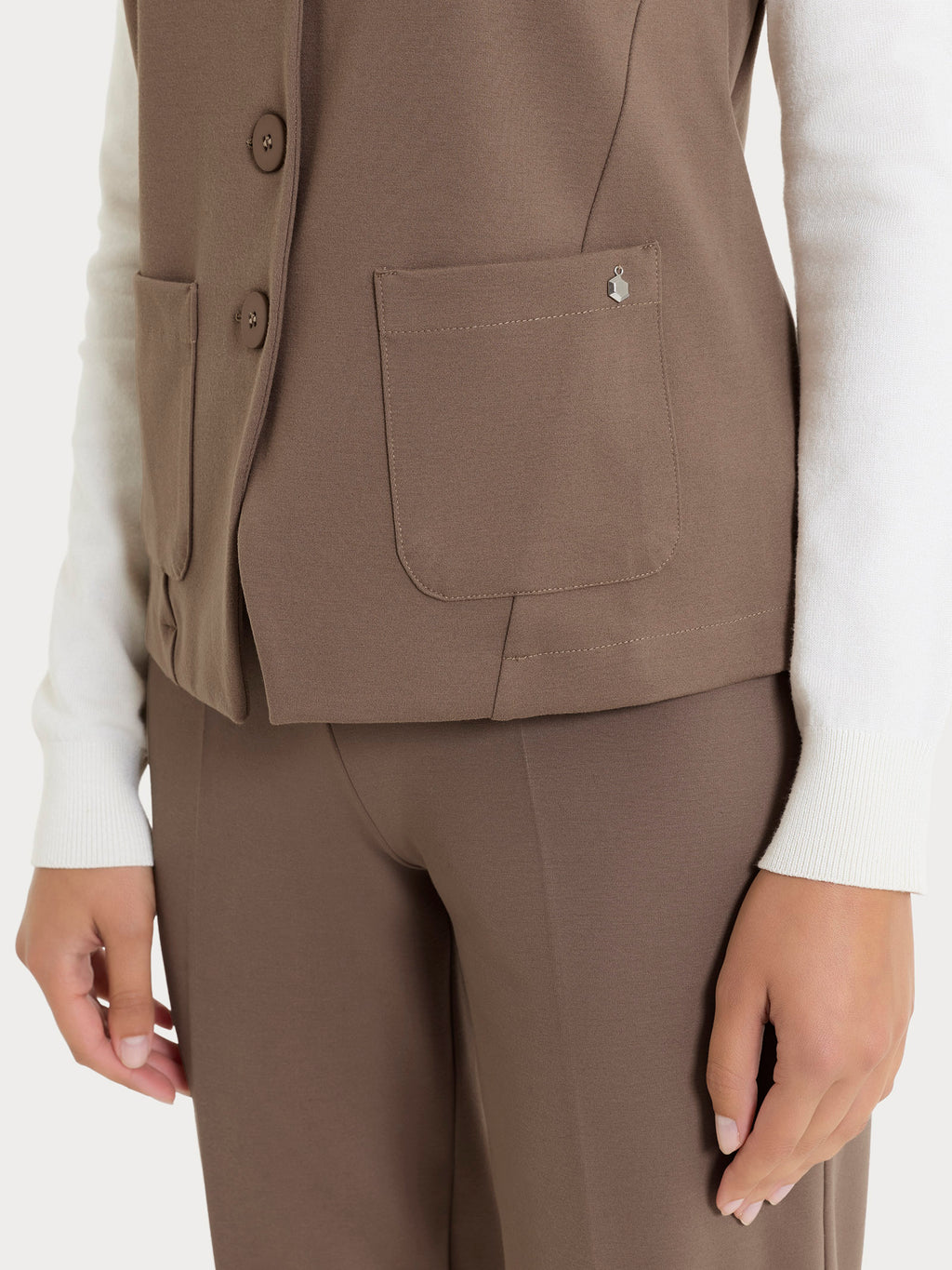 Gilet da donna con 4 bottoni e due tasche frontali applicate.