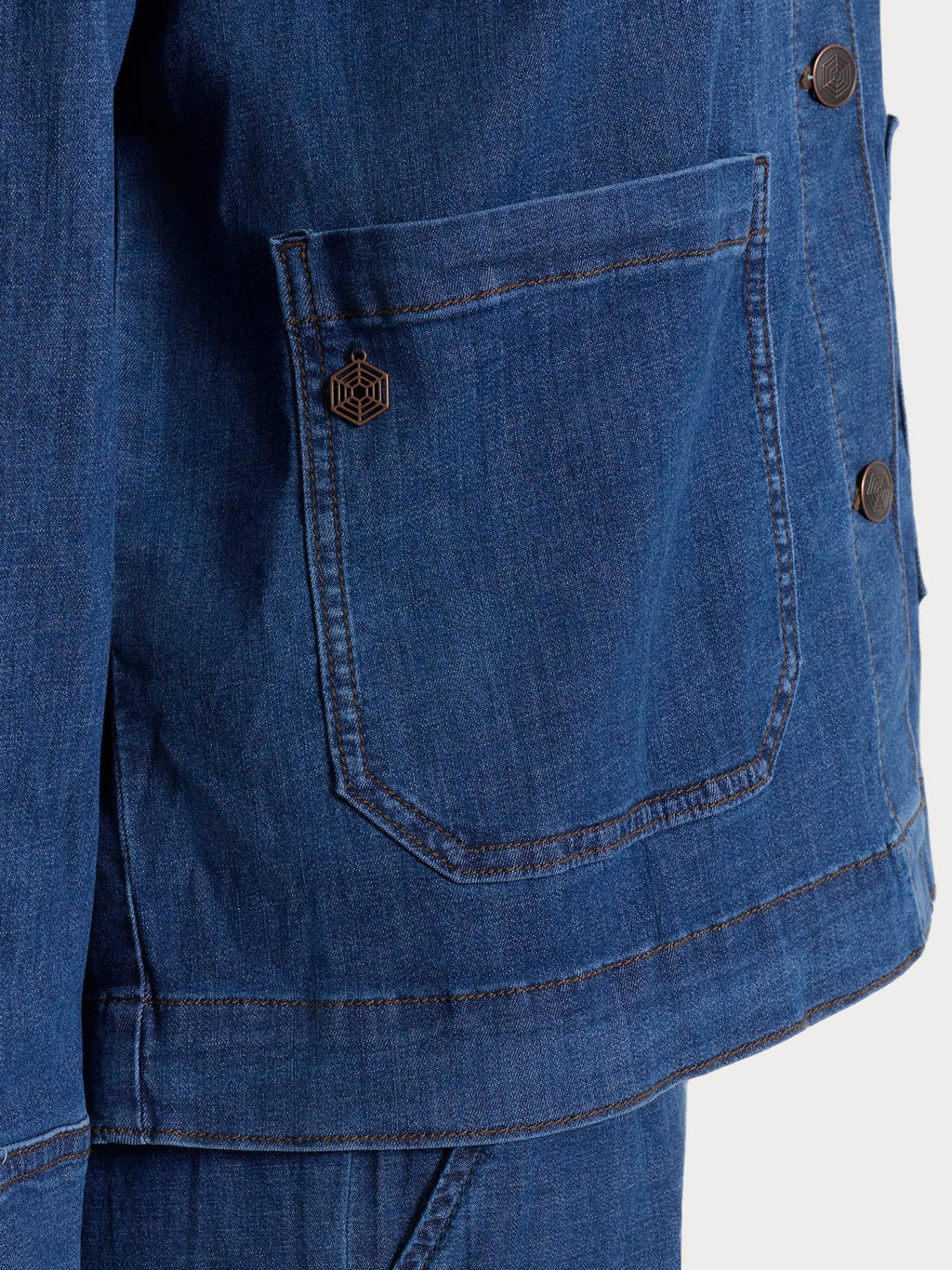 Realizzato nell’esclusivo tessuto Light Denim 7.5 oz, un denim elasticizzato leggero che dona al giubbotto un aspetto fresco e disinvolto senza rinunciare a comfort e resistenza, piacevole sulla pelle anche nelle giornate più lunghe.