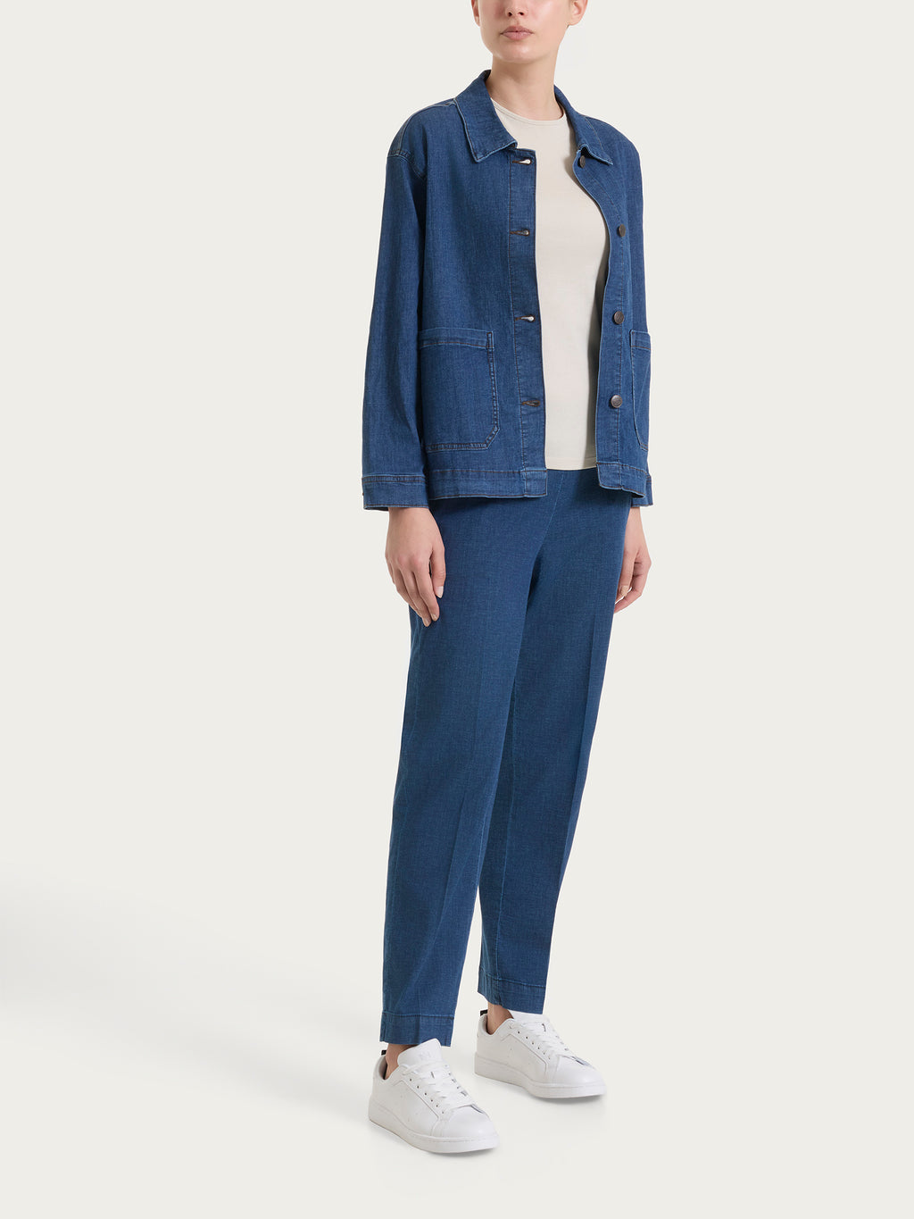 Giubbotto da donna con manica lunga e chiusura frontale a bottoni, realizzato in Light Denim.