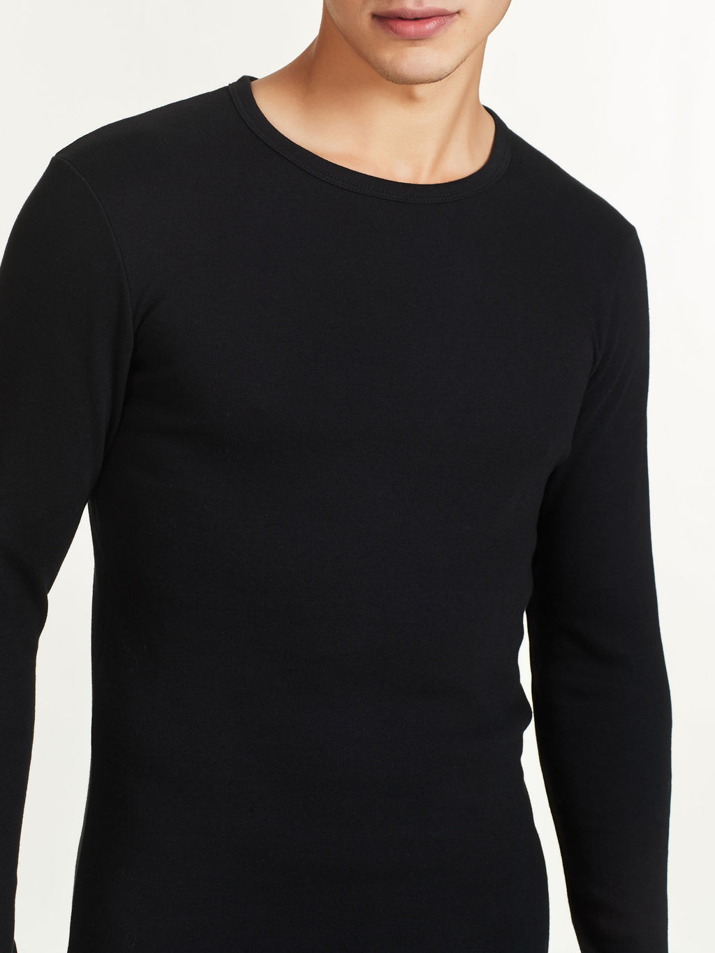Maglietta girocollo a manica lunga della linea Interlock in tessuto interlock di puro cotone.Creata con una doppia maglia in puro cotone calda e morbida garzata internamente.Perfetta per affrontar...