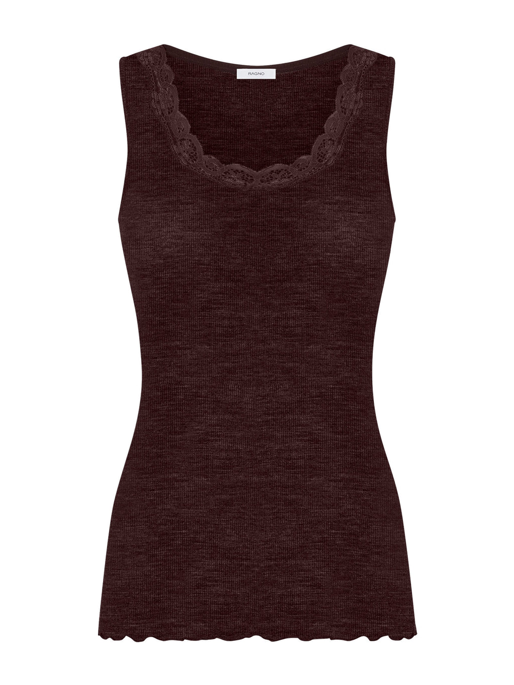 Lana Seta - Canottiera spalla larga in costina di lana e seta con pizzo - Chocolate Torte