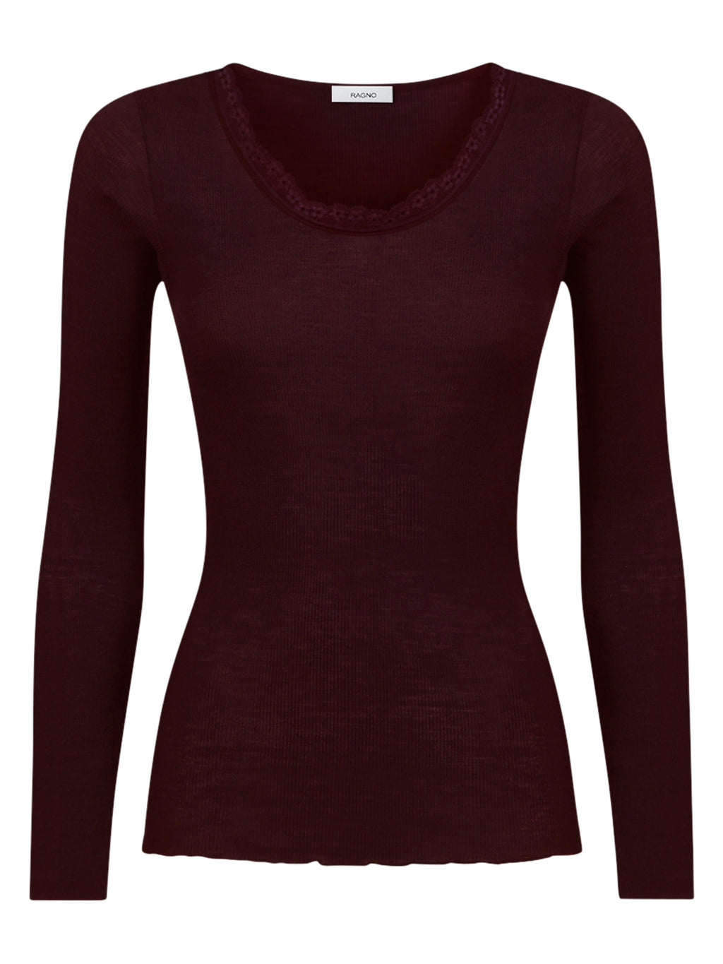 Lana Seta - Maglietta a manica lunga in costina di lana e seta con pizzo - Acero
