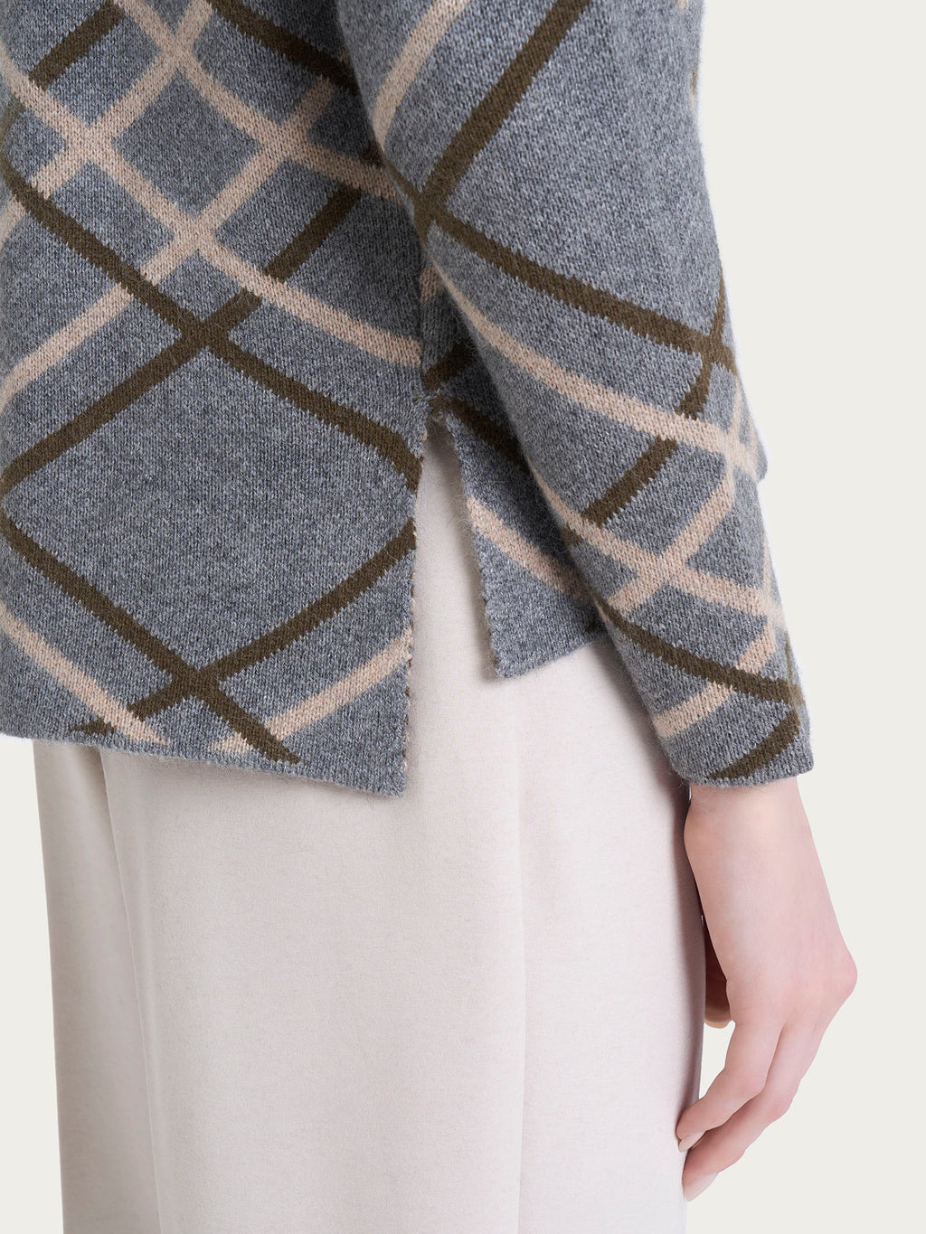 Maglia lupetto da donna, tessuto in finezza 7, caldo, morbido e pratico.Caratterizzato dalla fantasia check all over che delinea con eleganza la silhouette aggiungendo un tocco grafico e sofisticat...