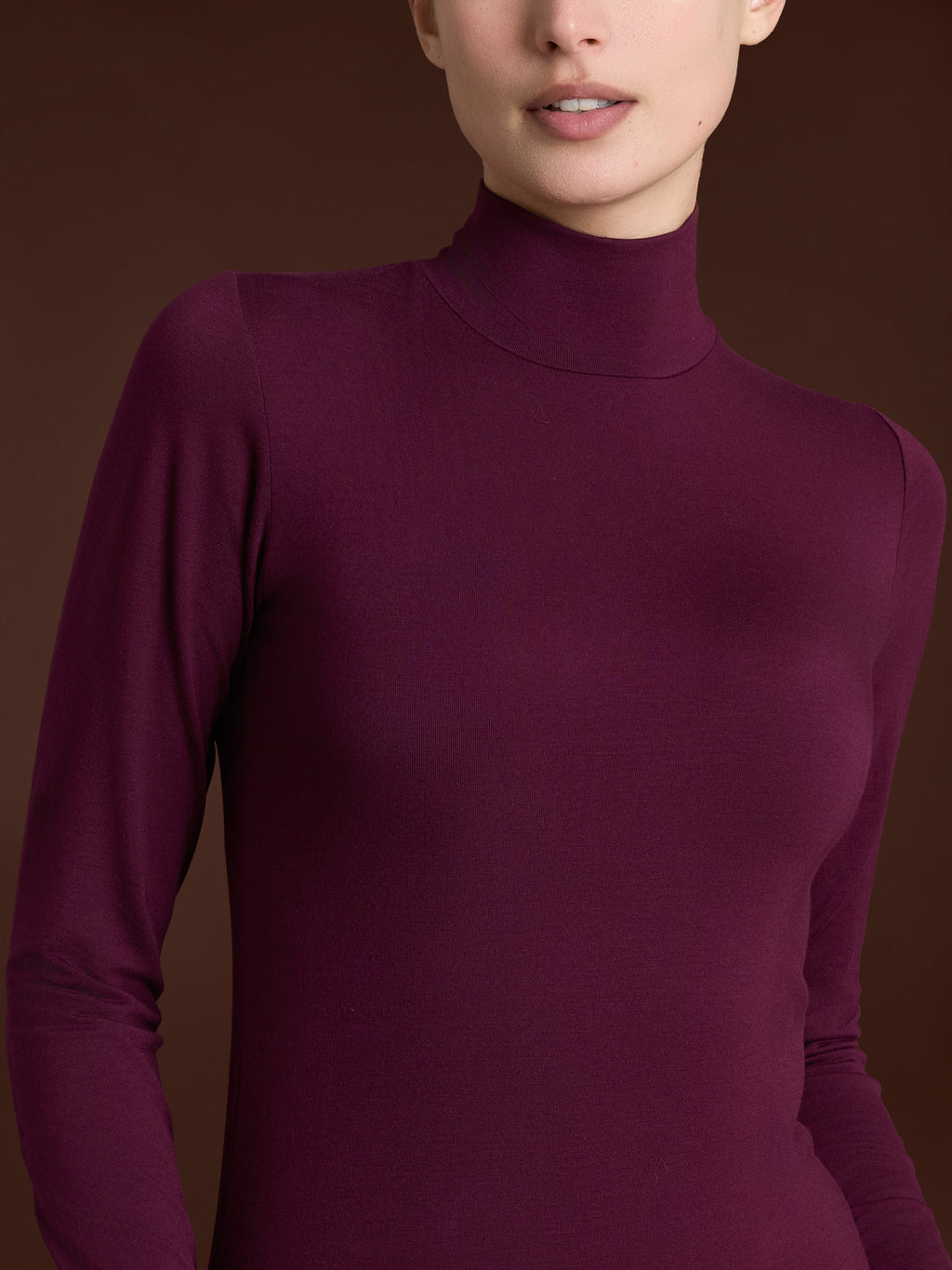 Maglia con collo lupetto e manica lunga da donna in eco viscosa, una delicata viscosa elasticizzata calda e morbida.