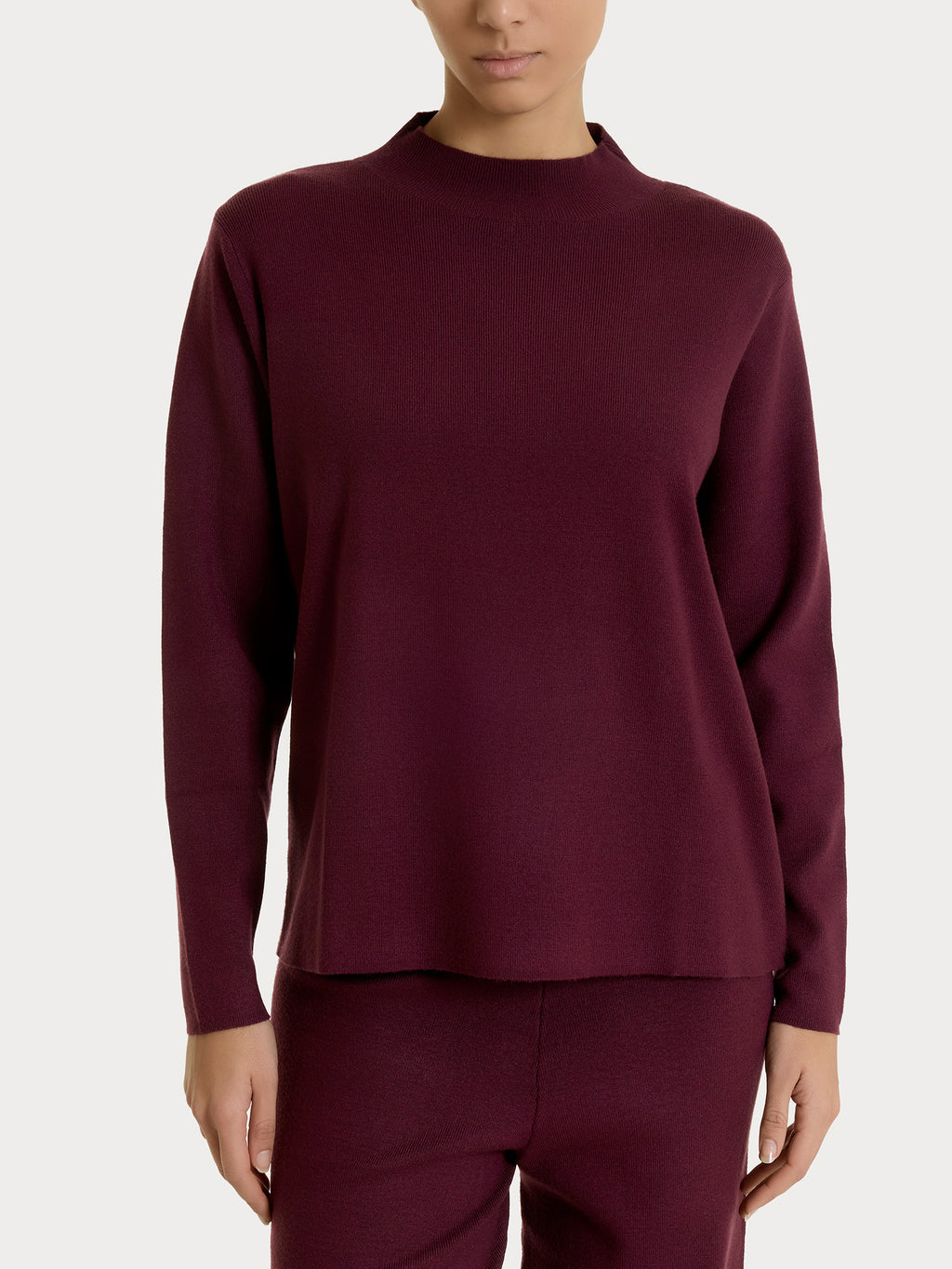 Maglia con collo lupetto a vulcano da donna in maglia unita di finezza 12.