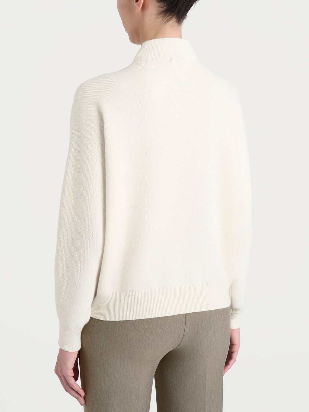 Maglia lupetto da donna con collo a cratere e manica a pipistrello delineate da pratici polsini.Realizzata con una lavorazione Punto Links e una finezza...