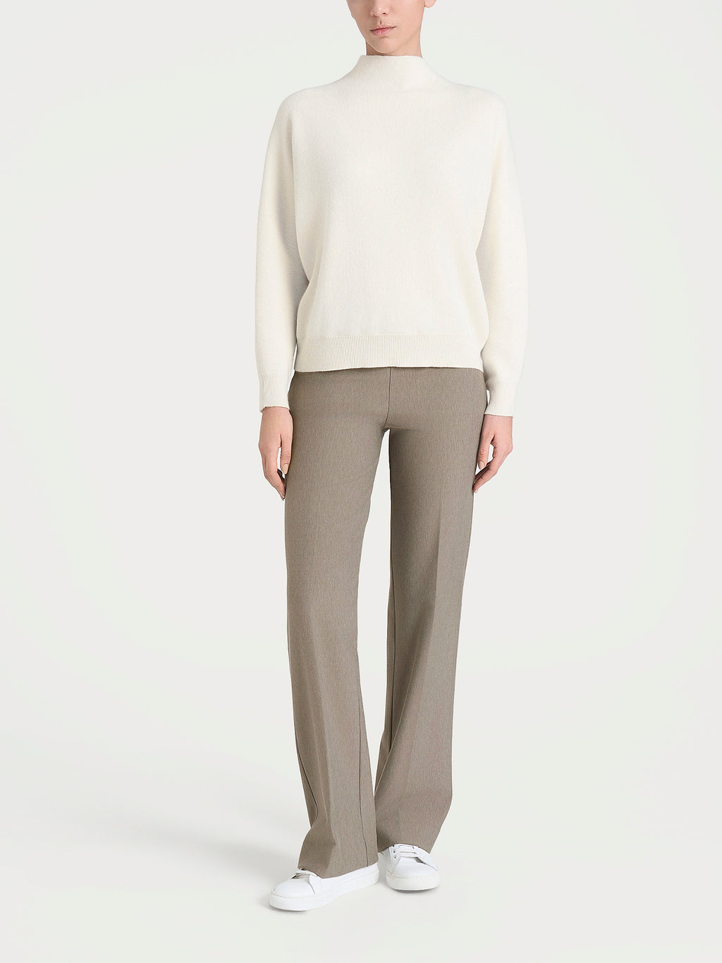 Maglia lupetto da donna con collo a cratere e manica a pipistrello delineate da pratici polsini.