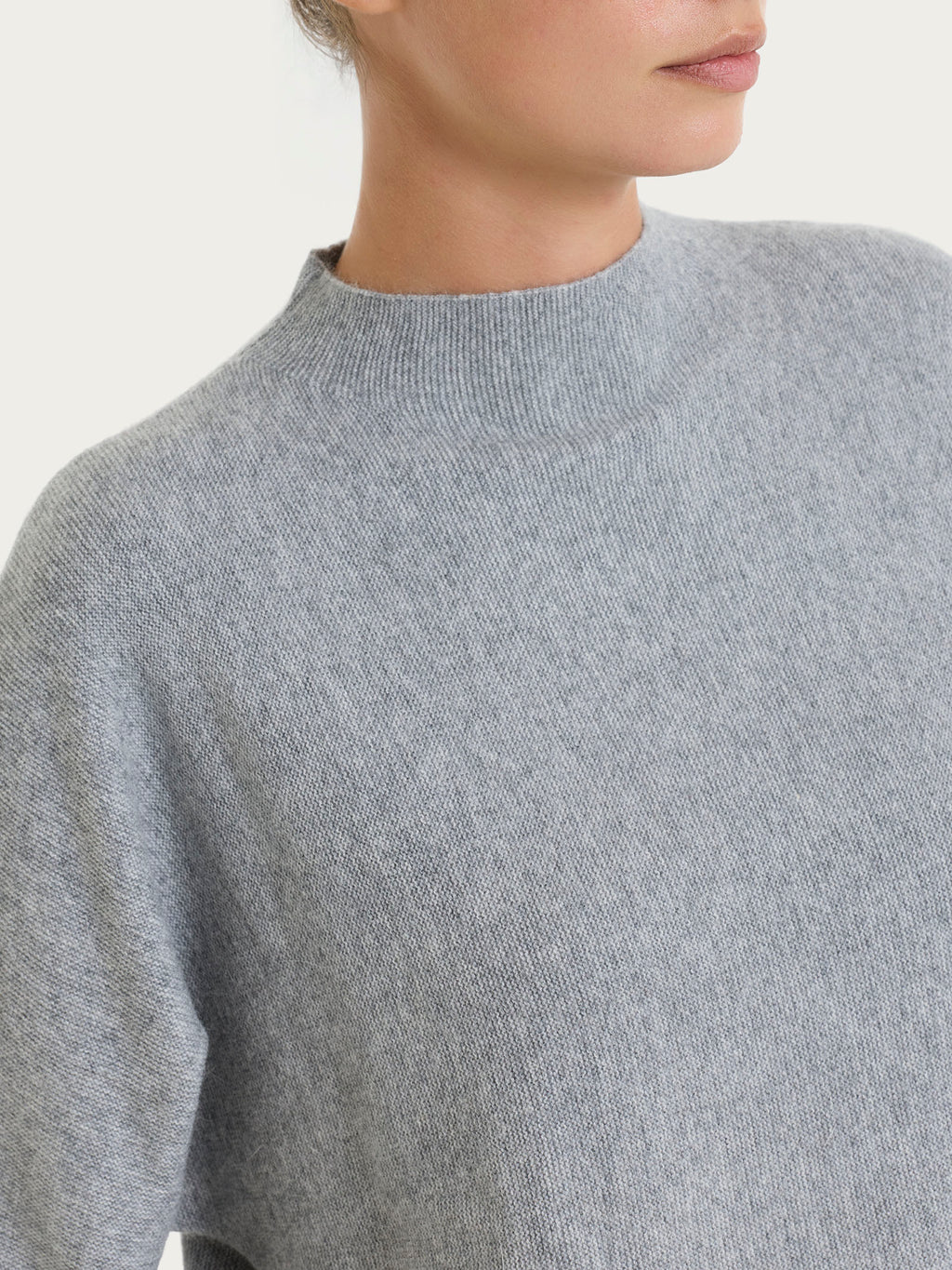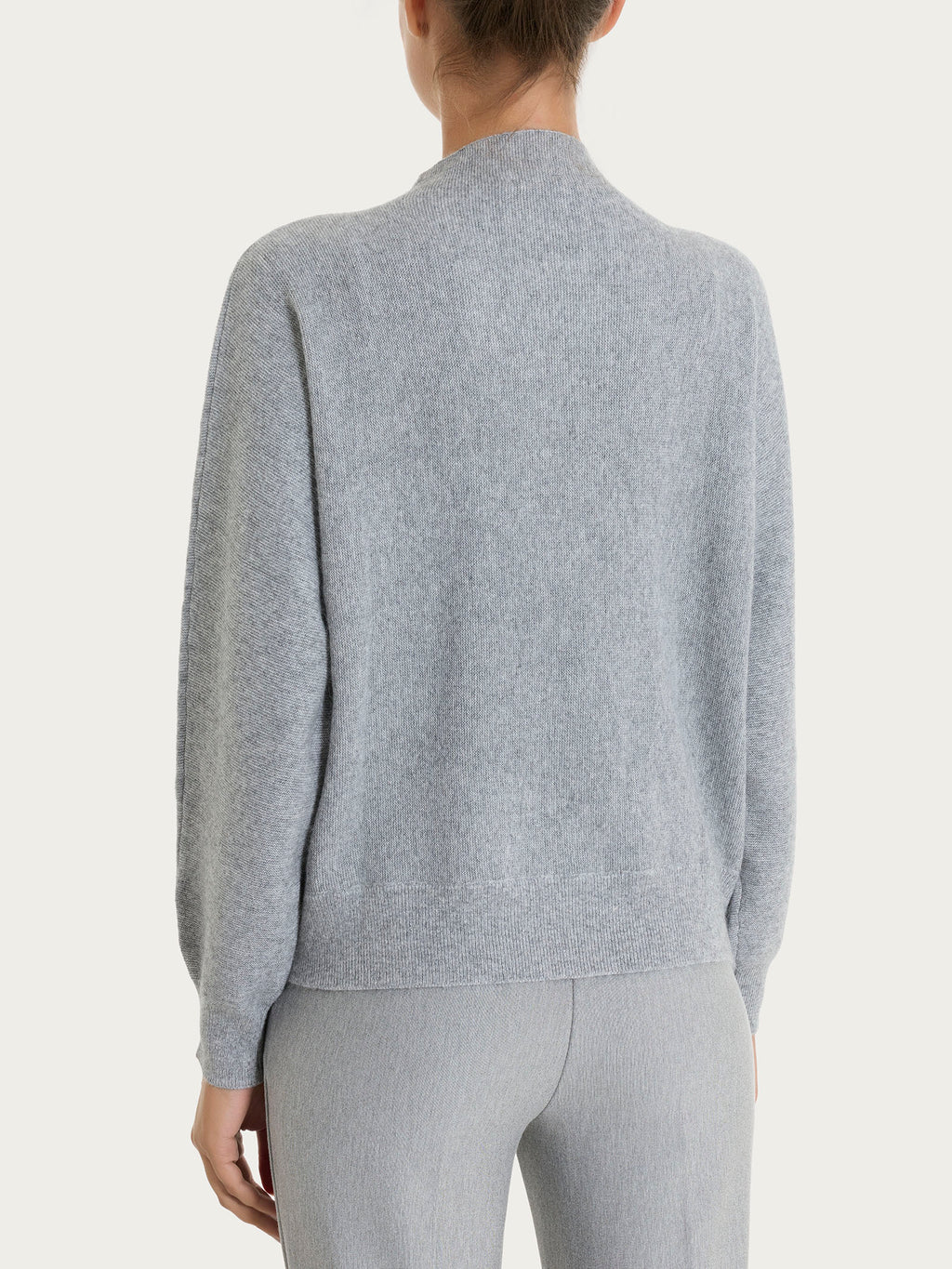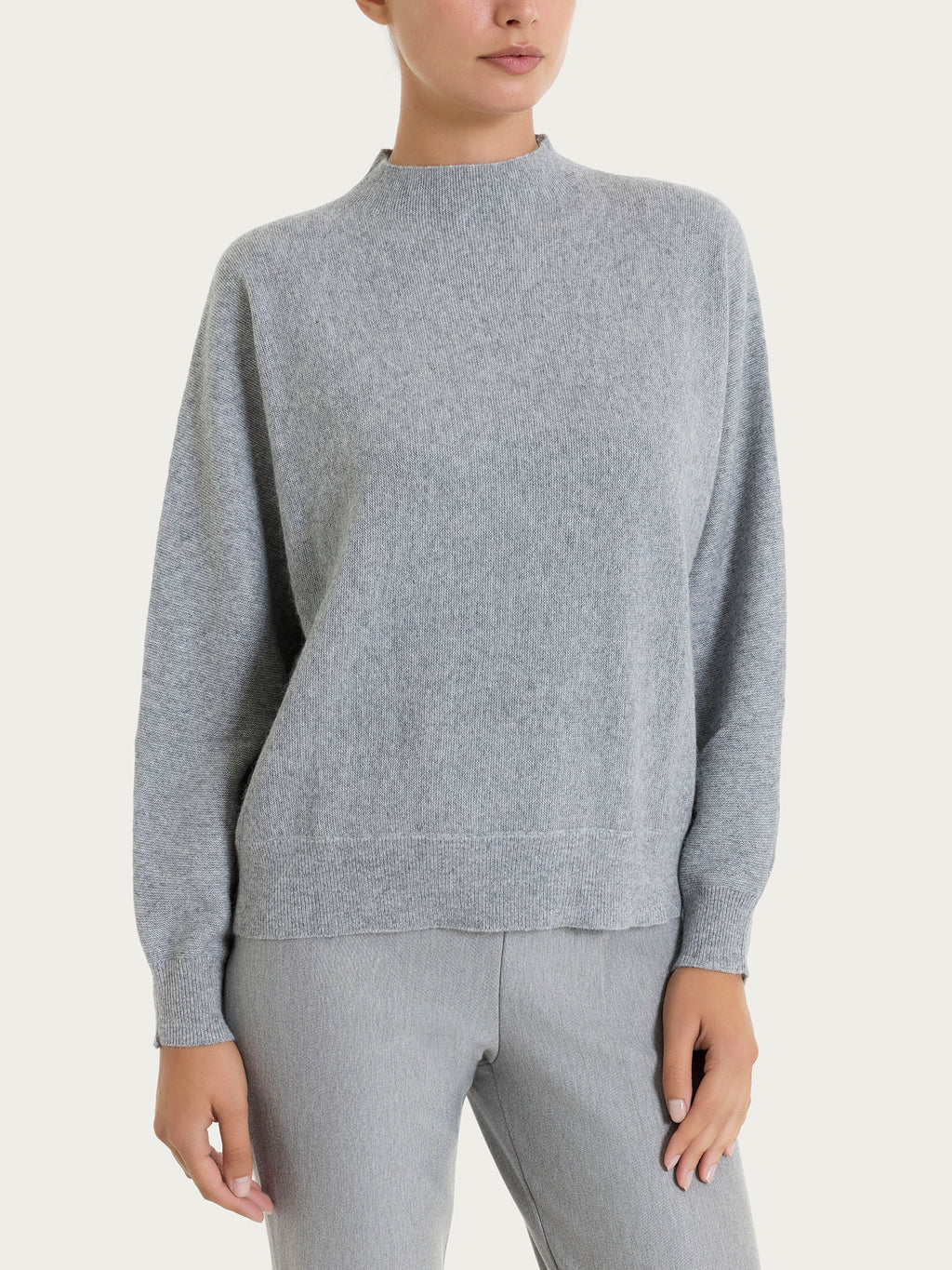 Maglia lupetto da donna con collo a cratere e manica a pipistrello delineate da pratici polsini.
