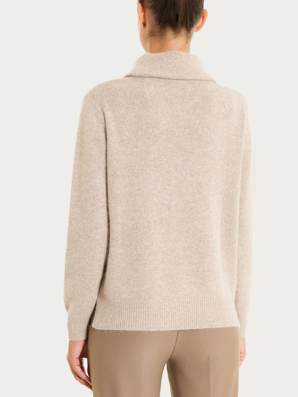 Gli spacchetti laterali aggiungono un dettaglio di stile, mentre la bordatura a costina 1x1 definisce con eleganza i contorni del capo.
