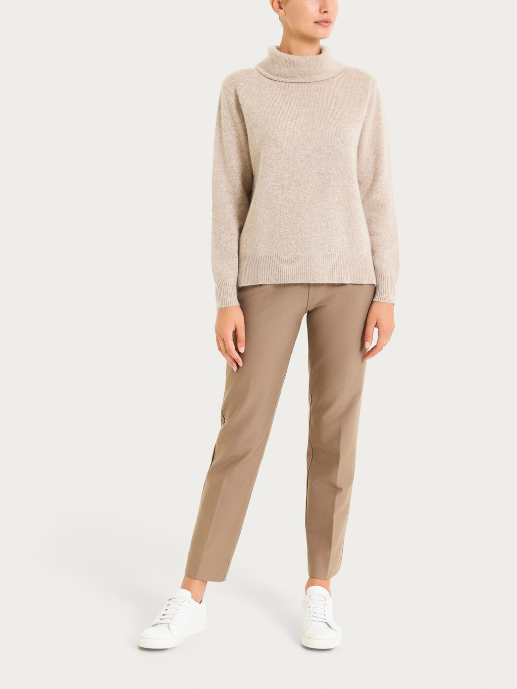 Realizzato in Natural Soft, tessuto piacevolmente morbido al tatto, leggero sulla pelle ma comunque caldo e confortevole. Ha una mano soffice e compatta, che lo rende ideale per i mesi più freschi senza risultare pesante.