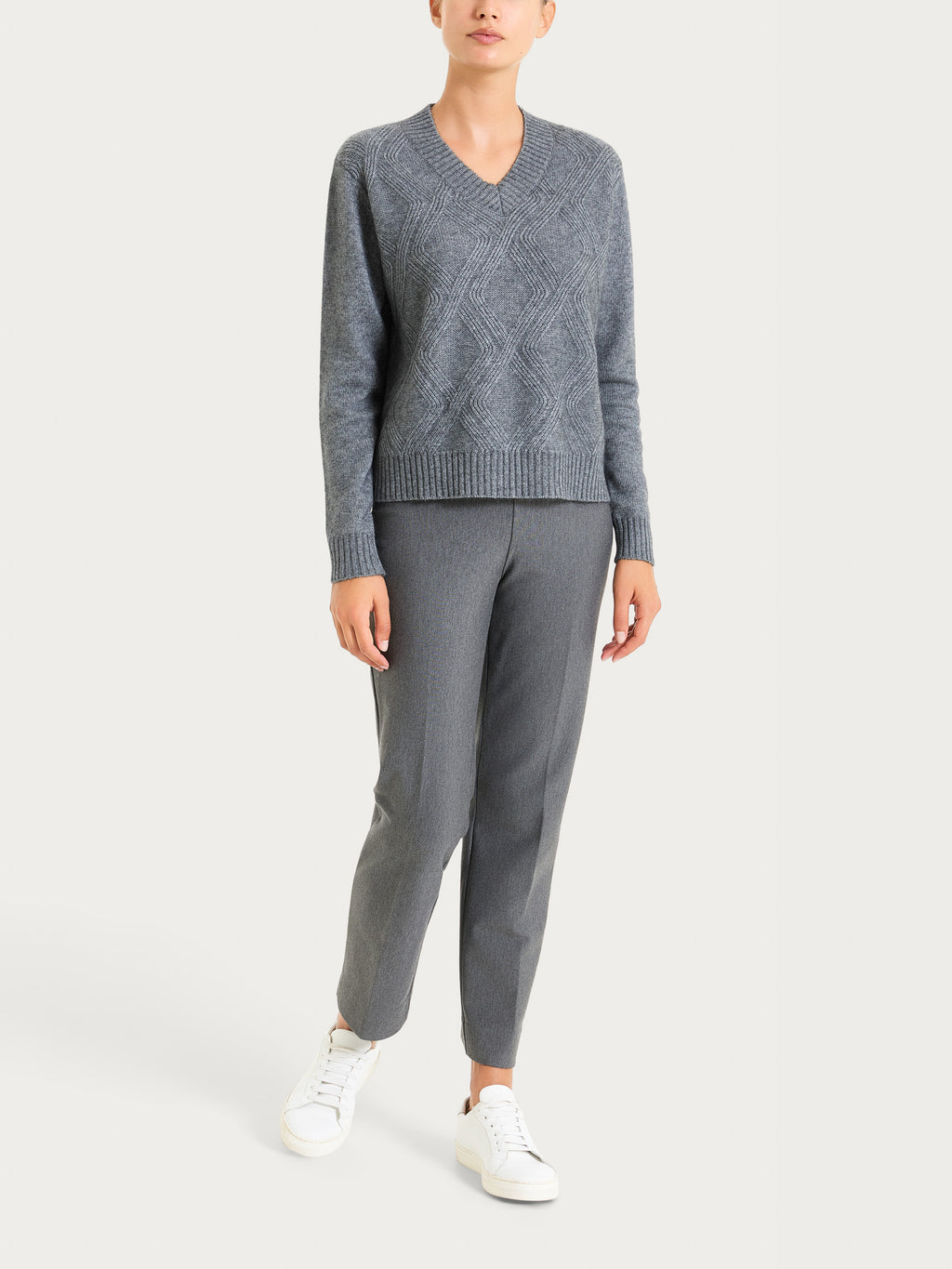 Lo scollo a V delinea elegantemente il collo, mentre la finezza 7 lo rende leggero senza comprometterne il calore.