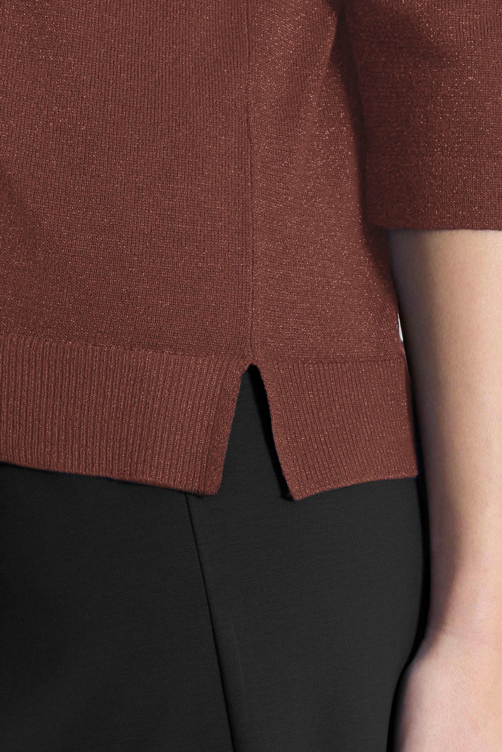 Maglia da donna in Lurex Summertime con scollo a V e manica 3/4, realizzata in maglia rasata di finezza 12.