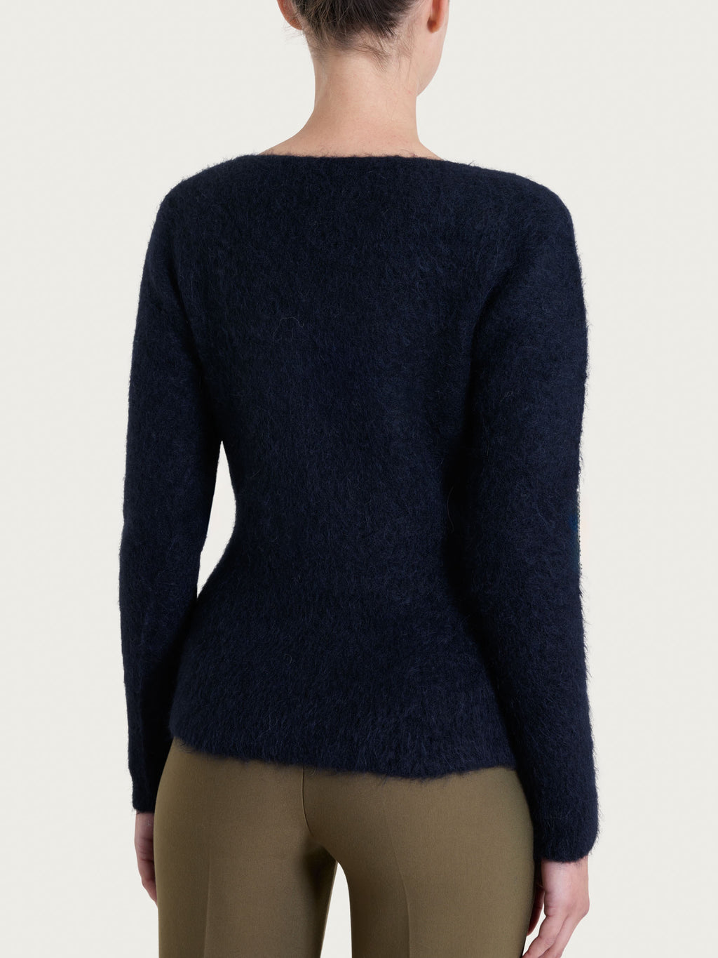 Maglia con scollo madonna in Misto Alpaca - Nero