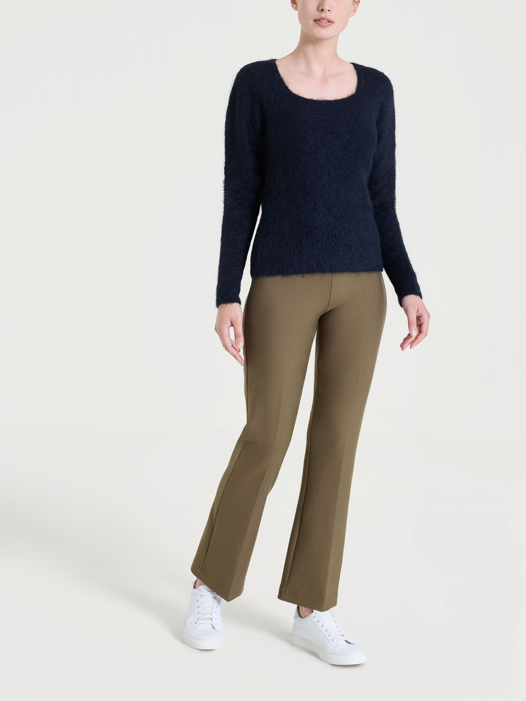 Maglia con scollo madonna da donna in misto lana e alpaca, tessuto in finezza 7, caldo, morbido e voluminoso.