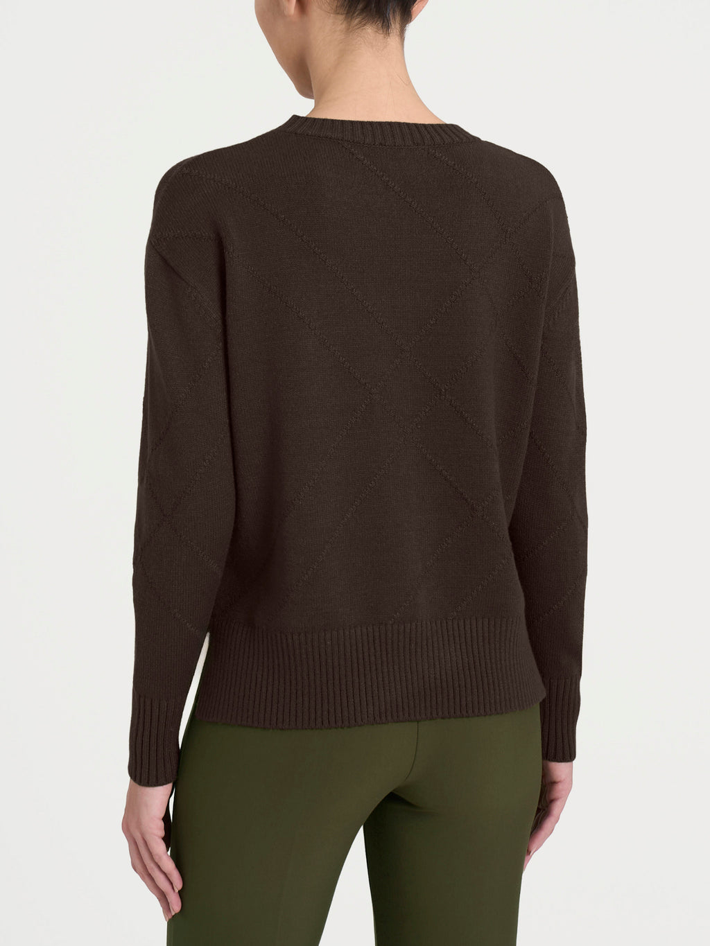 Realizzato in morbida maglia rasata ha una bordatura in costa 2x2 che impreziosisce sia il fondo che i polsini, oltre a definire con eleganza lo scollo, conferendo al design un tocco di struttura.