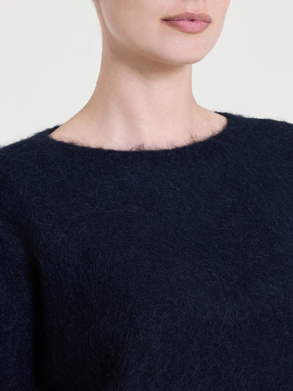 Maglia girocollo da donna in misto lana e alpaca, tessuto in finezza 7, caldo, soffice e voluminoso.