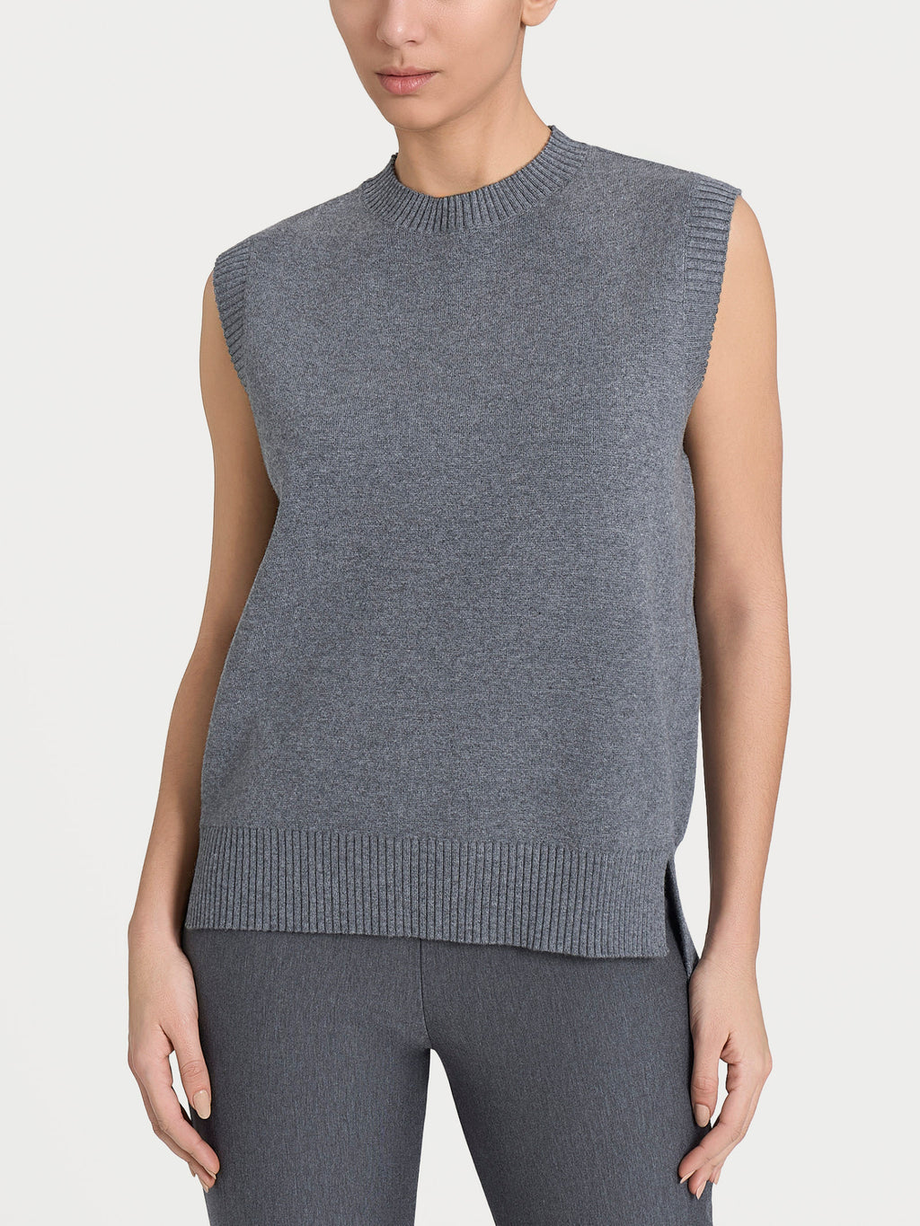 Maglia smanicata da donna in viscosa, tessuto in finezza 12, caldo, morbido e pratico.