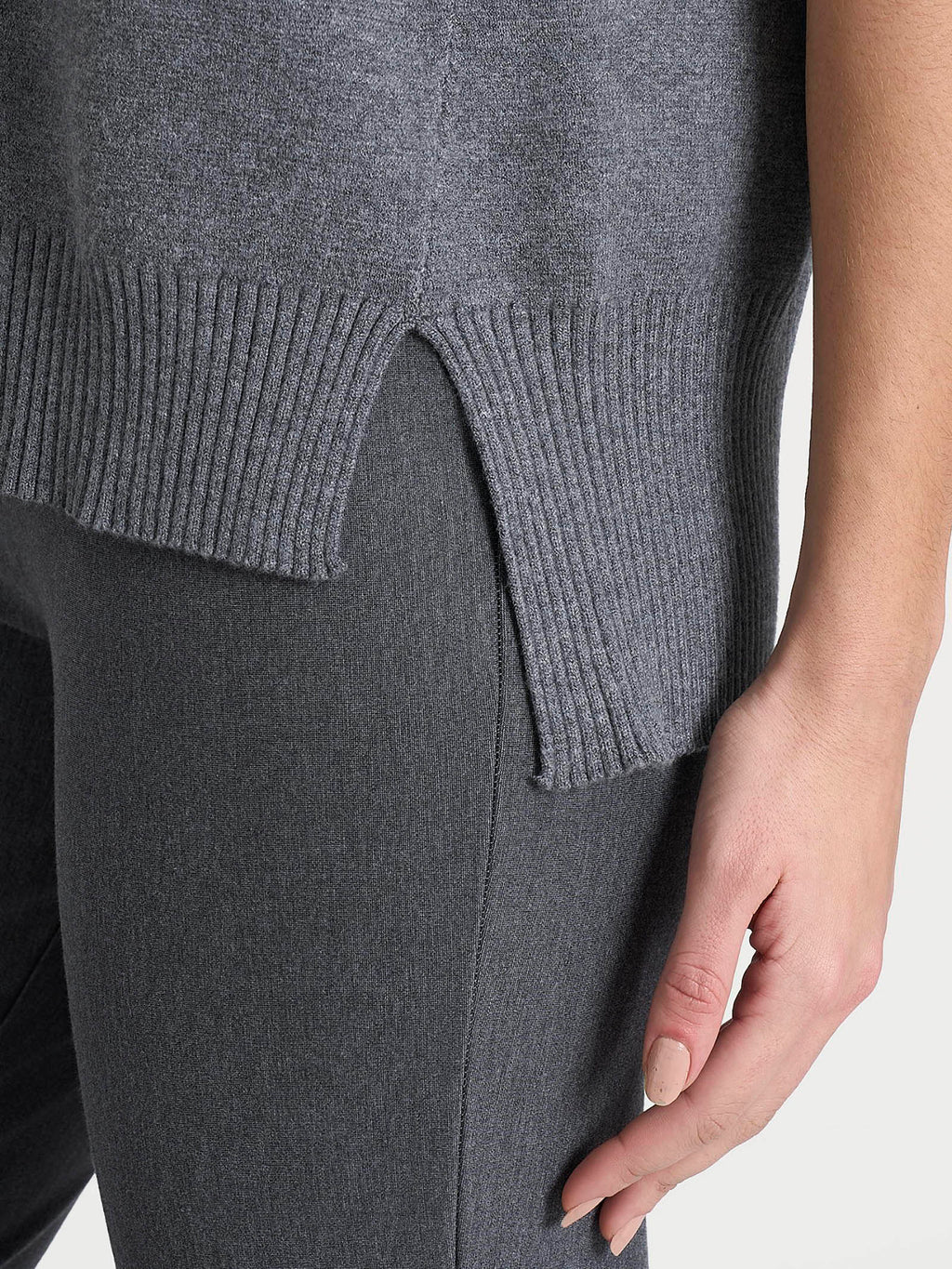 Questo modello presenta comode aperture laterali e bordature in costina 3x3 che donano al capo un’eleganza sobria e curata.