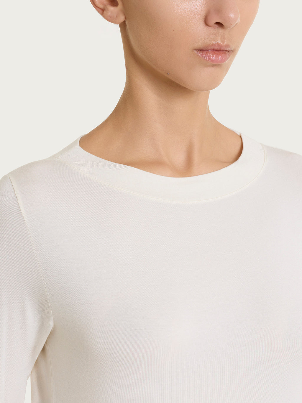 Realizzato in Eco Viscosa, jersey di viscosa lucente e delicata anche sulle pelli più sensibili ma allo stesso tempo resistente e traspirante, ulteriormente arricchita dall'aggiunta dell'elastomero per aumentarne l'elasticità e smerigliata internamente per maggior morbidezza e calore.