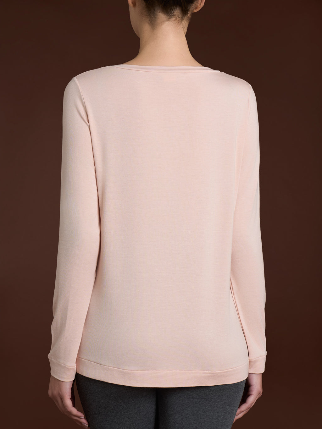 Questo capo con una vestibilità è morbida e fluida, per una maggiore comodità e praticità quotidiana, è tinta unita con collo a barchetta e a manica lunga.