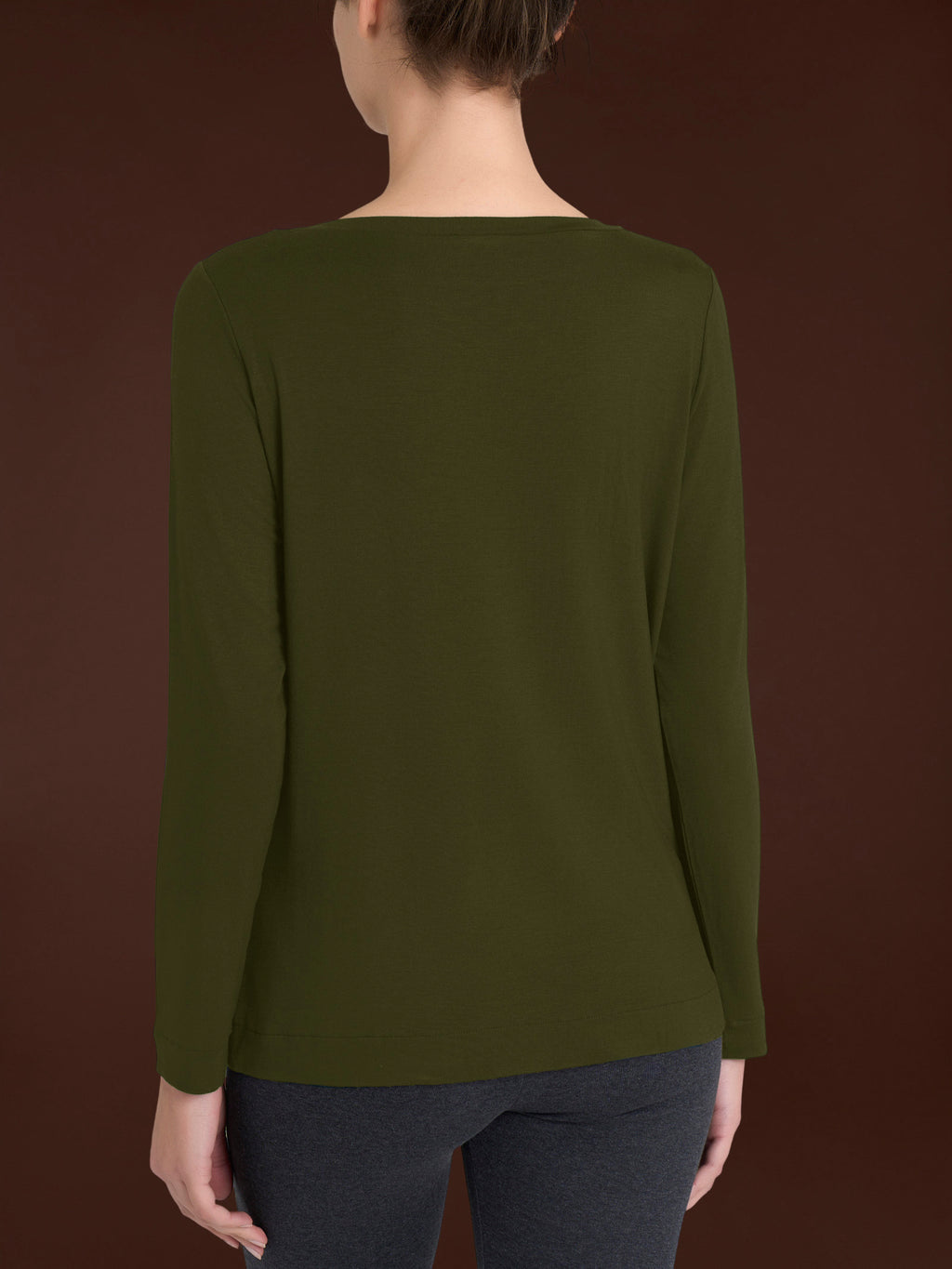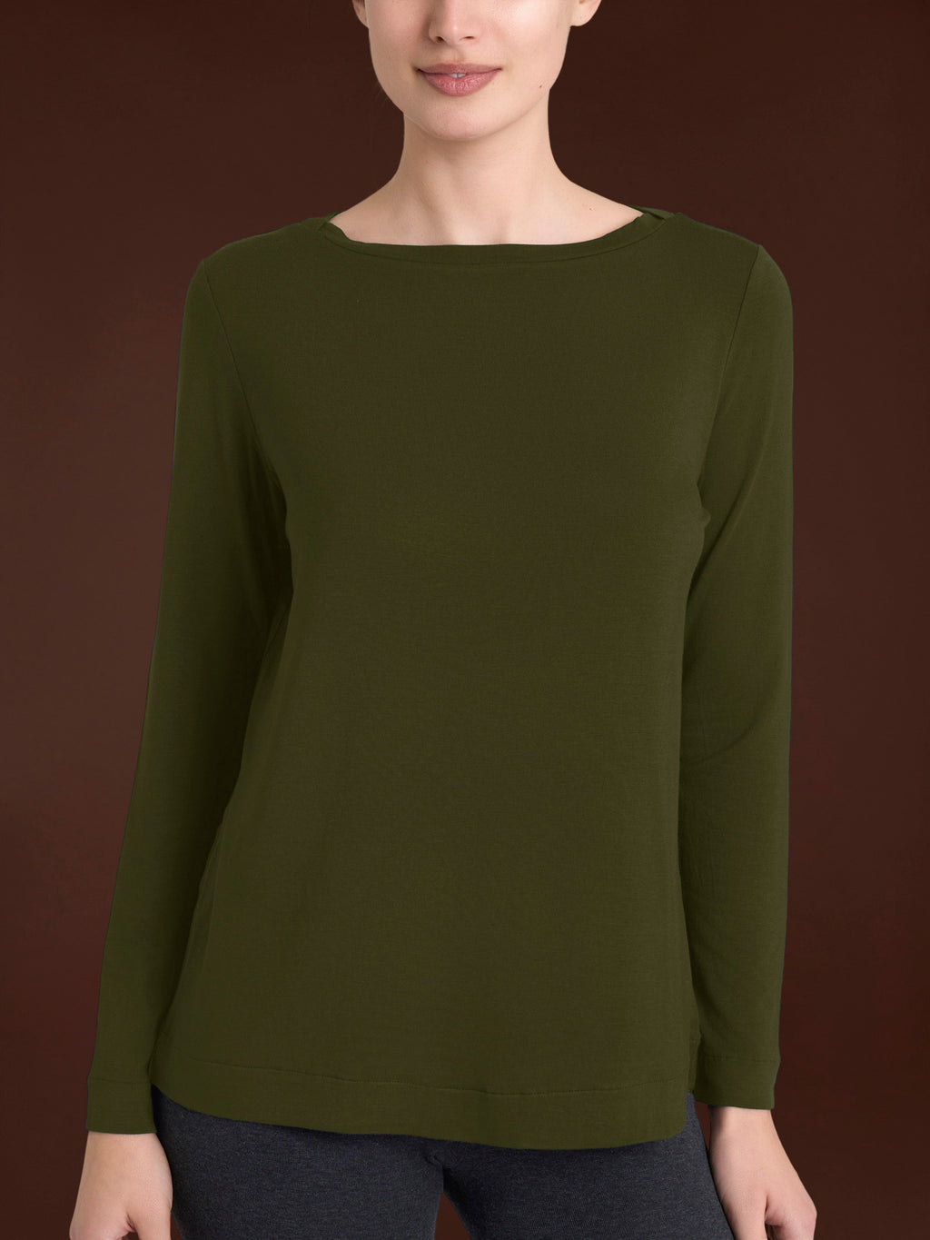 Questo capo con una vestibilità è morbida e fluida, per una maggiore comodità e praticità quotidiana, è tinta unita con collo a barchetta e a manica lunga.