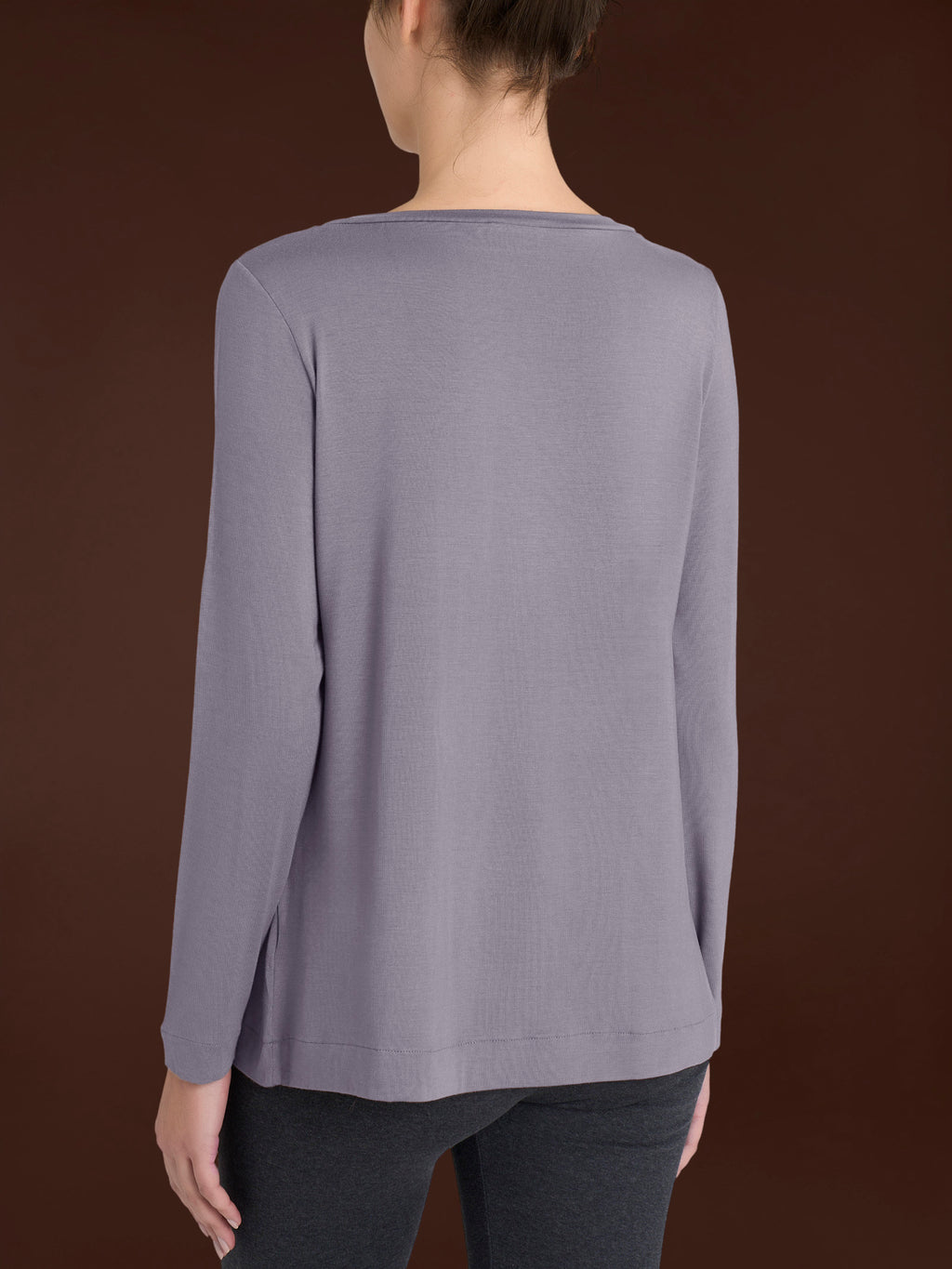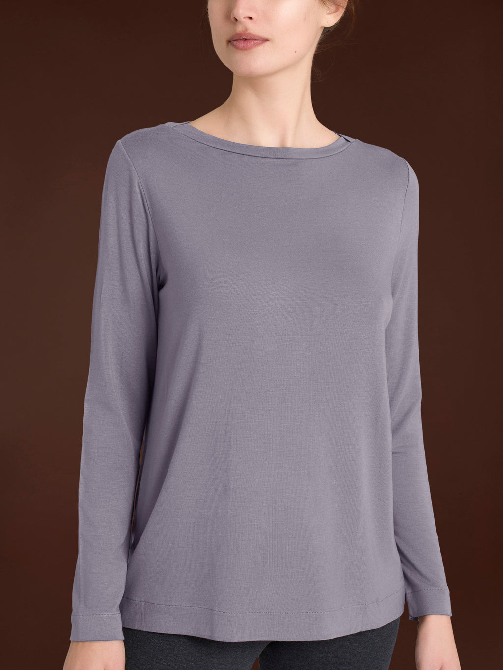 Questo capo con una vestibilità è morbida e fluida, per una maggiore comodità e praticità quotidiana, è tinta unita con collo a barchetta e a manica lunga.
