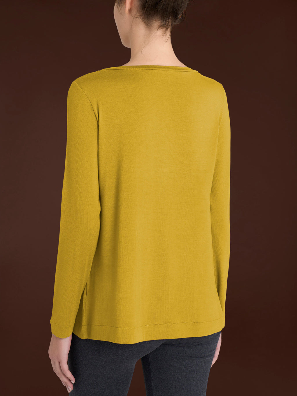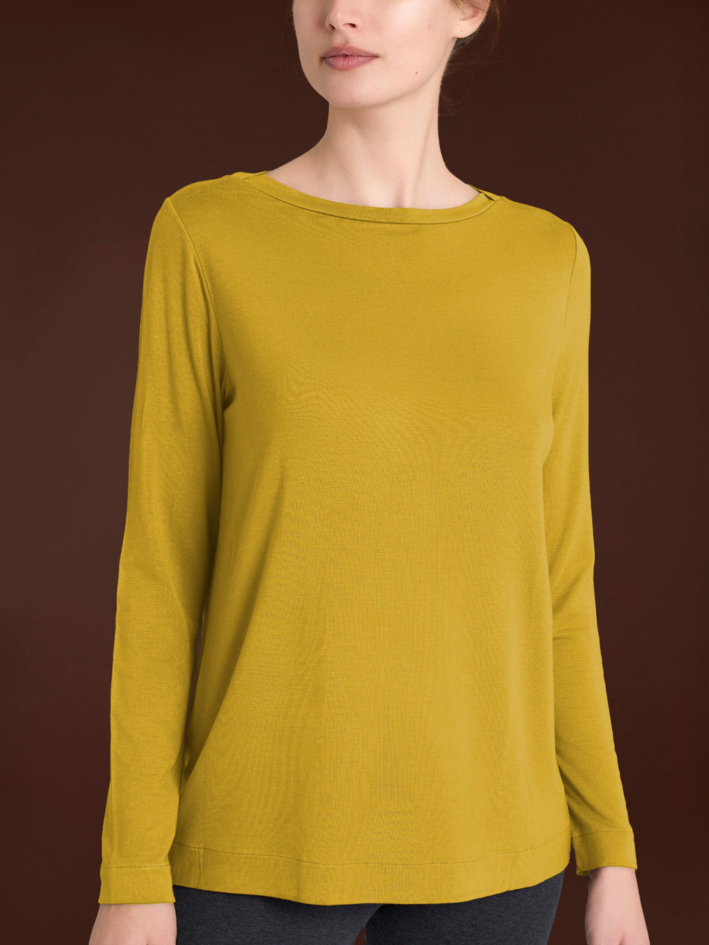 Maglietta con collo a barchetta in Eco Viscosa - Oil Yellow