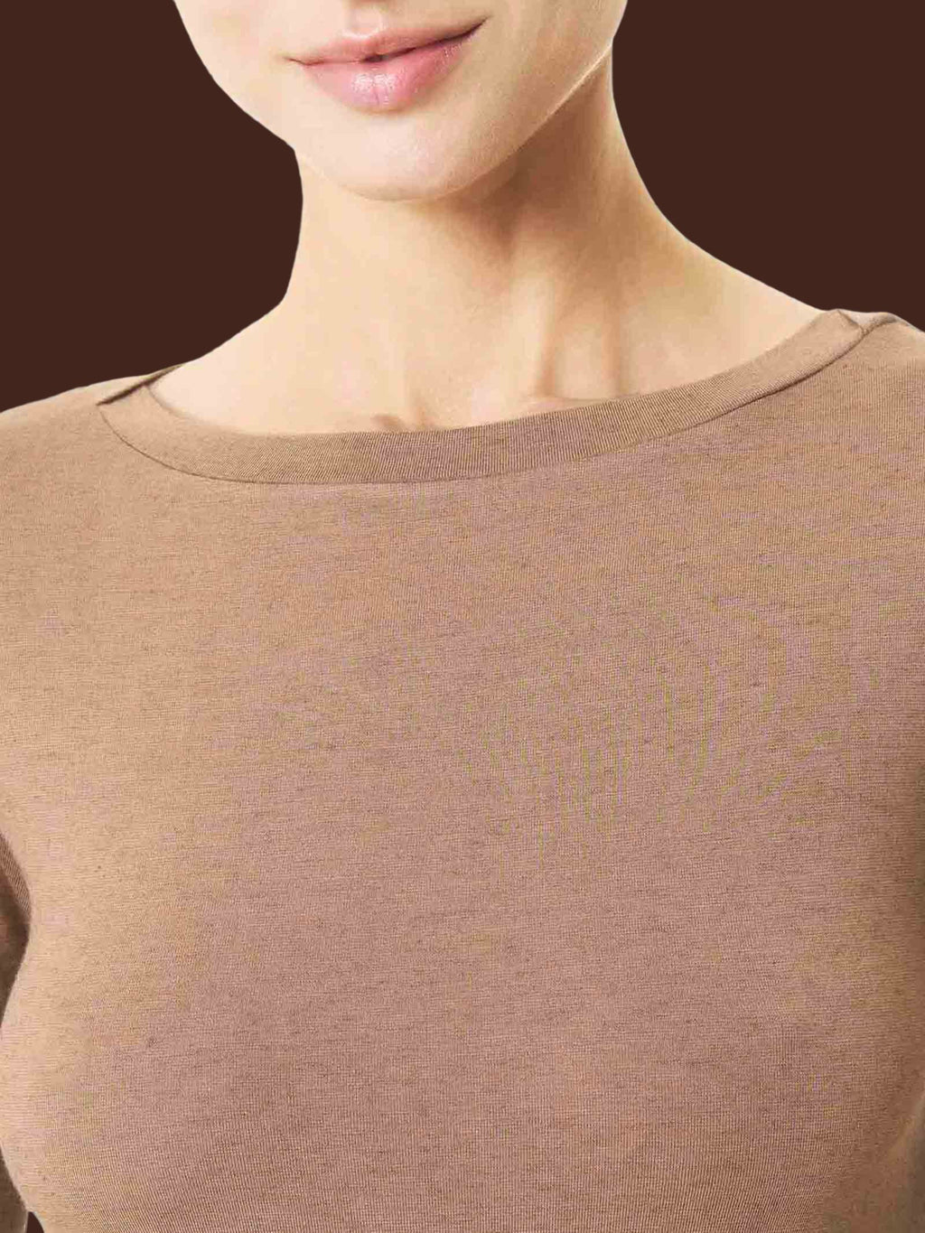 Maglietta con collo a barchetta in filato Tenderwool - Visone