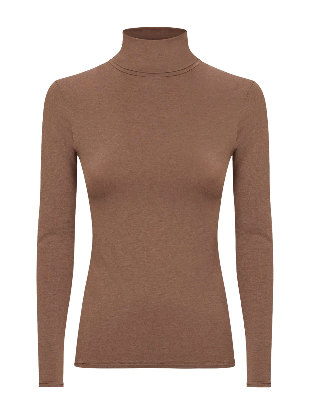 Maglietta con collo dolcevita in filato Tenderwool - Visone