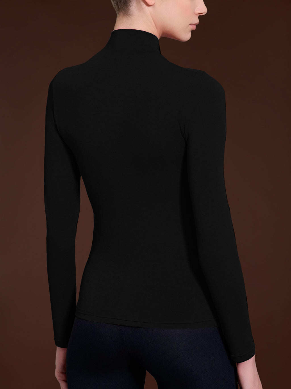 Modello lupetto a manica lunga, in tinta unita.