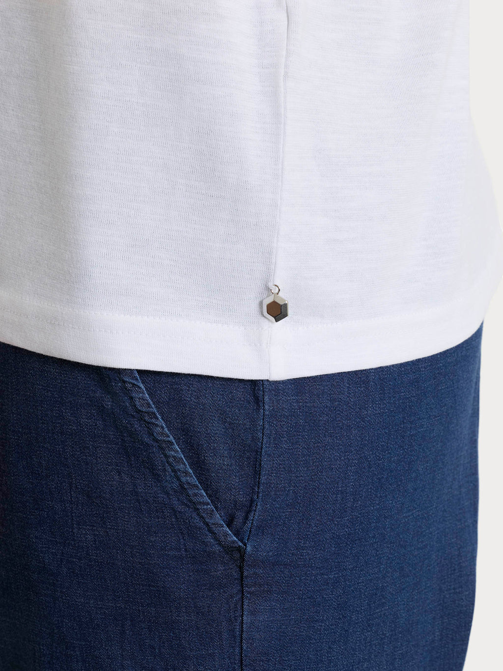 Realizzata in slub jersey, un tessuto in puro cotone ottenuto da filato fiammato, che dona un effetto leggermente mosso e naturale. Morbida e traspirante, è piacevole sulla pelle e ideale per la stagione calda.