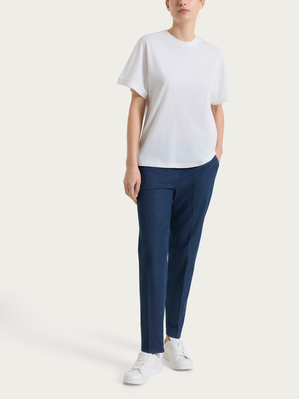 Il taglio lineare e la vestibilità soft seguono la figura con naturalezza, senza stringere e senza eccedere nei volumi, offrendo comfort e libertà di movimento.