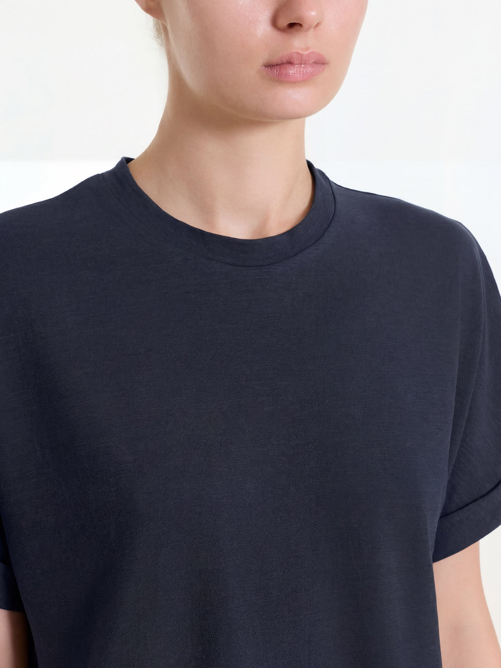 T-shirt da donna con girocollo e manica corta over risvoltabile.