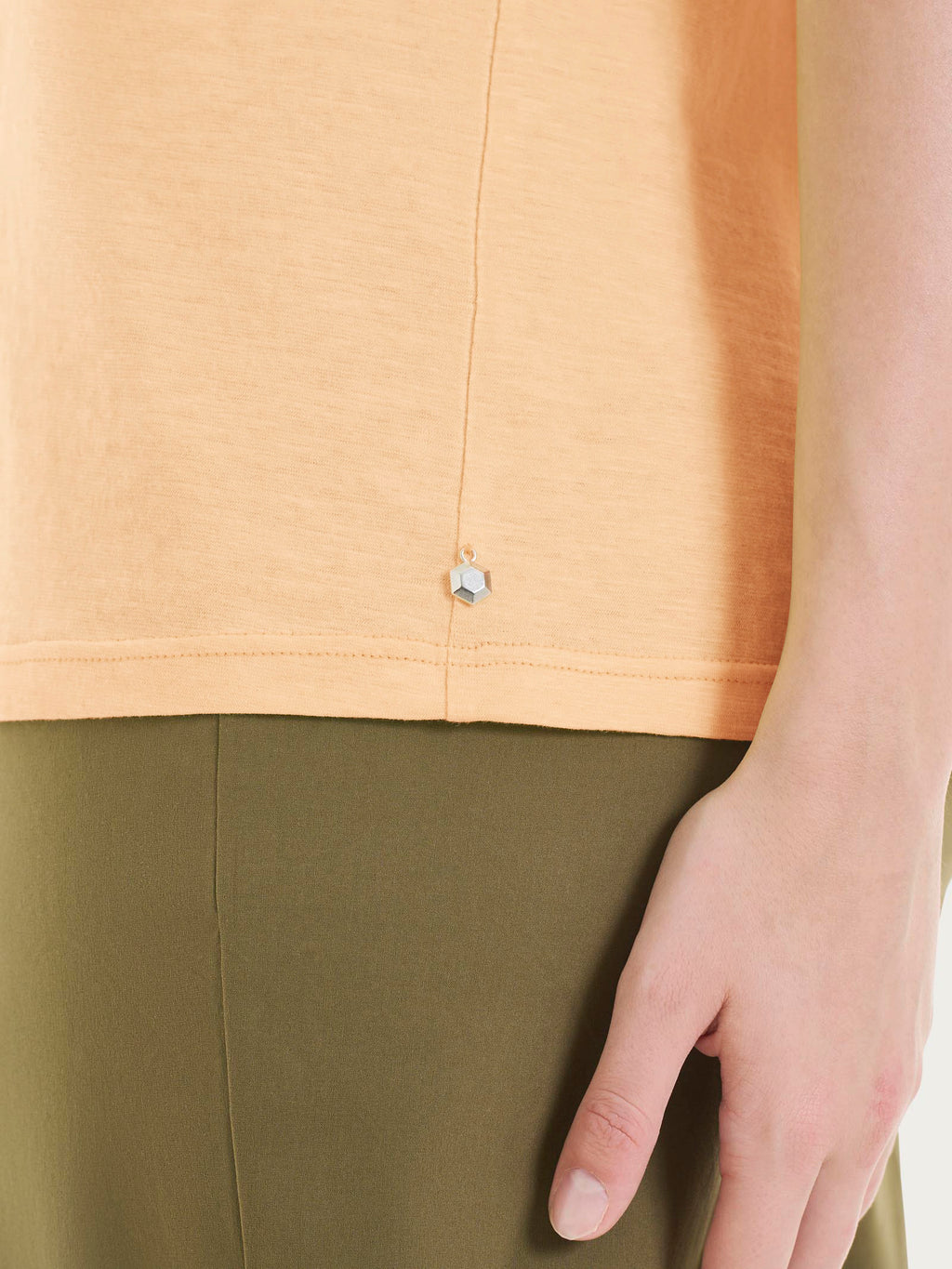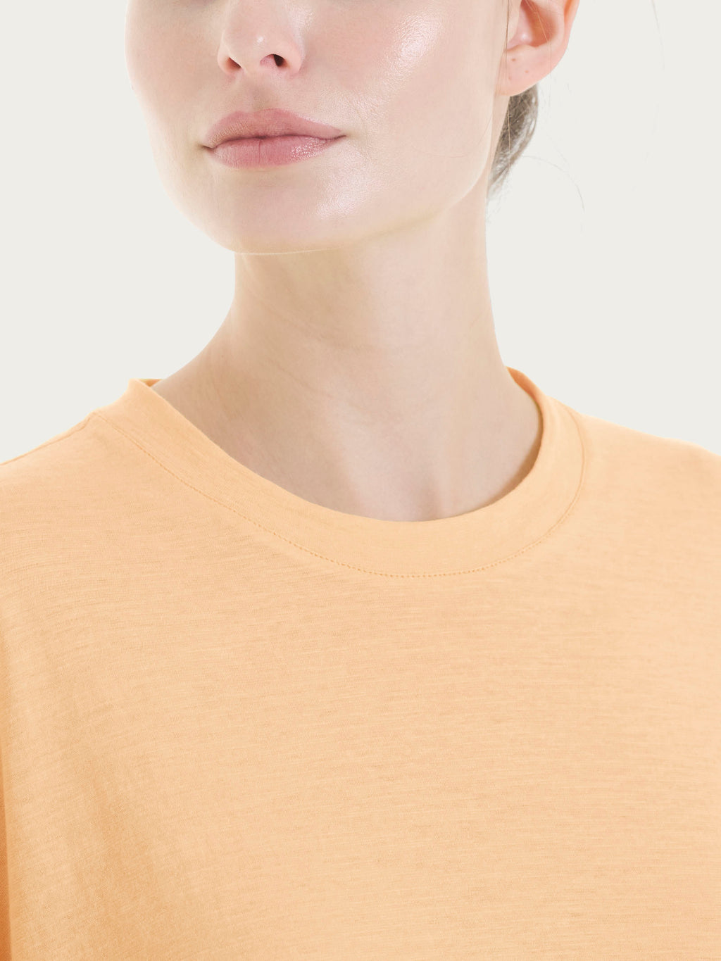 Realizzata in slub jersey, un tessuto in puro cotone ottenuto da filato fiammato, che dona un effetto leggermente mosso e naturale. Morbida e traspirante, è piacevole sulla pelle e ideale per la stagione calda.