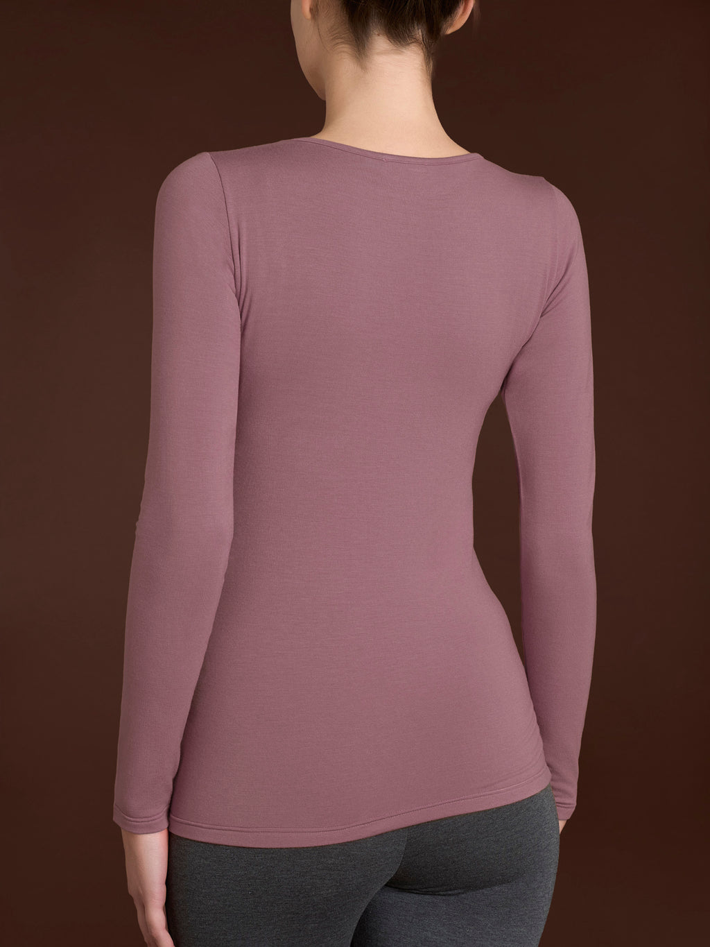 Maglia con scollo a barchetta e manica lunga da donna in ecoviscosa, una delicata viscosa elasticizzata calda e morbida.