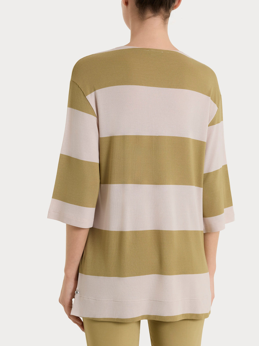 Maglietta con scollo a V e macro righe in Summer Light - Fant. Khaki
