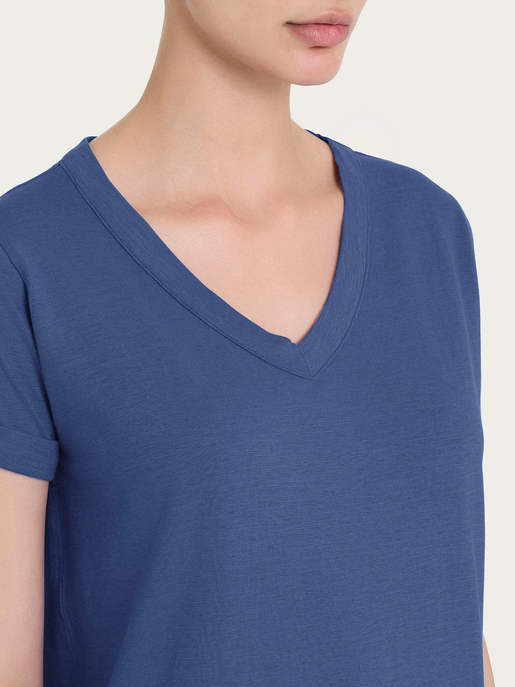 Maglietta con Scollo a V in slub jersey di cotone - Oceana