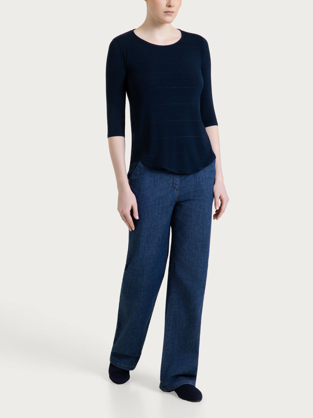 Maglietta da donna con girocollo e manica 3/4, dal look leggero e luminoso.
